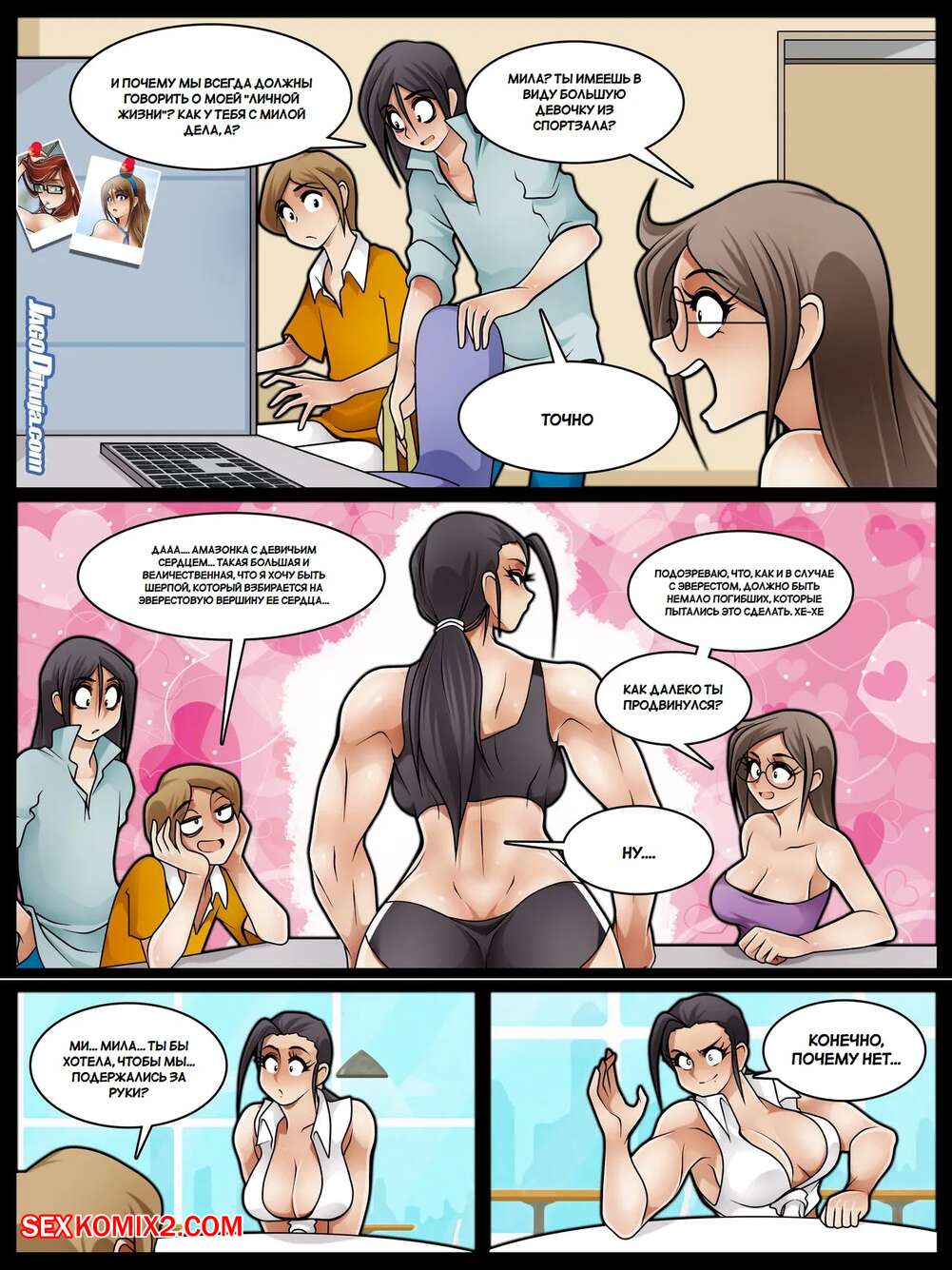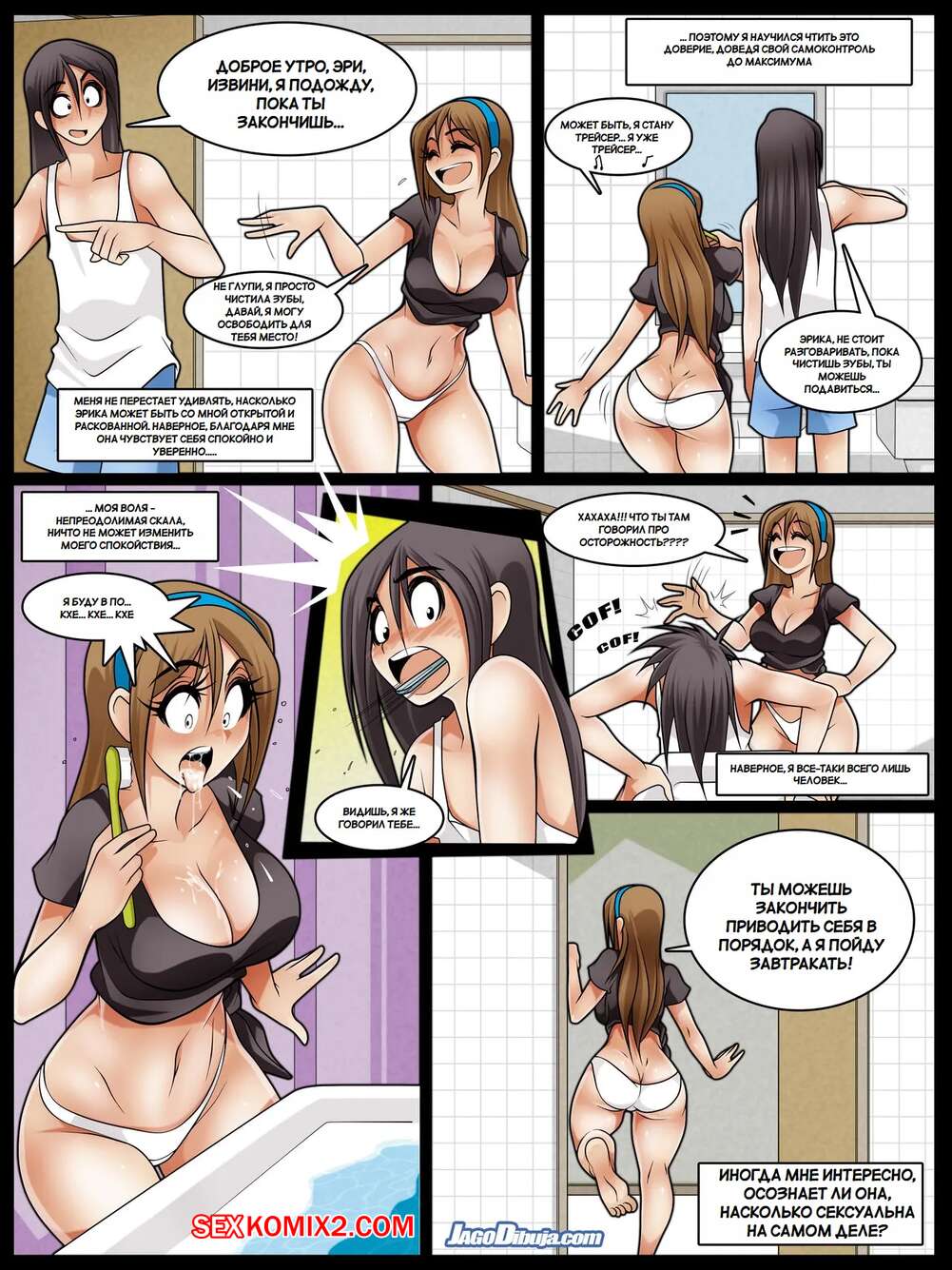 Порно комикс Жизнь с девушкой хипстером. Living With HipsterGirl. Jagodibuja Молодой парень живет с двумя горячими красотками с шикарными телами. Они совсем не стесняются своего соседа и ходят спокойно перед ним полуголые, возбуждая своего дружка.