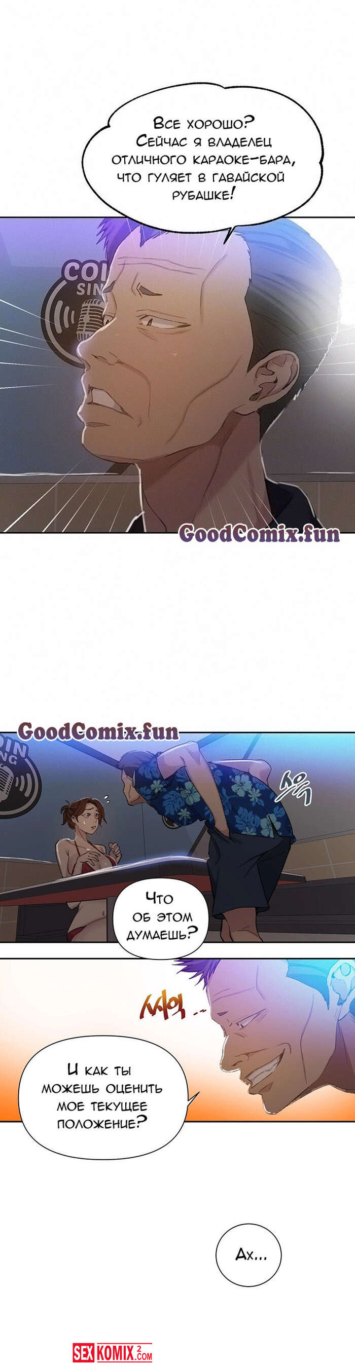 Порно комикс Тайное обучение. Части 52 и 53. Secret Class. Женщина пошла за незнакомцем в надежде, что будет секс. Но он всего лишь хотел, чтобы они вместе спели в караоке.