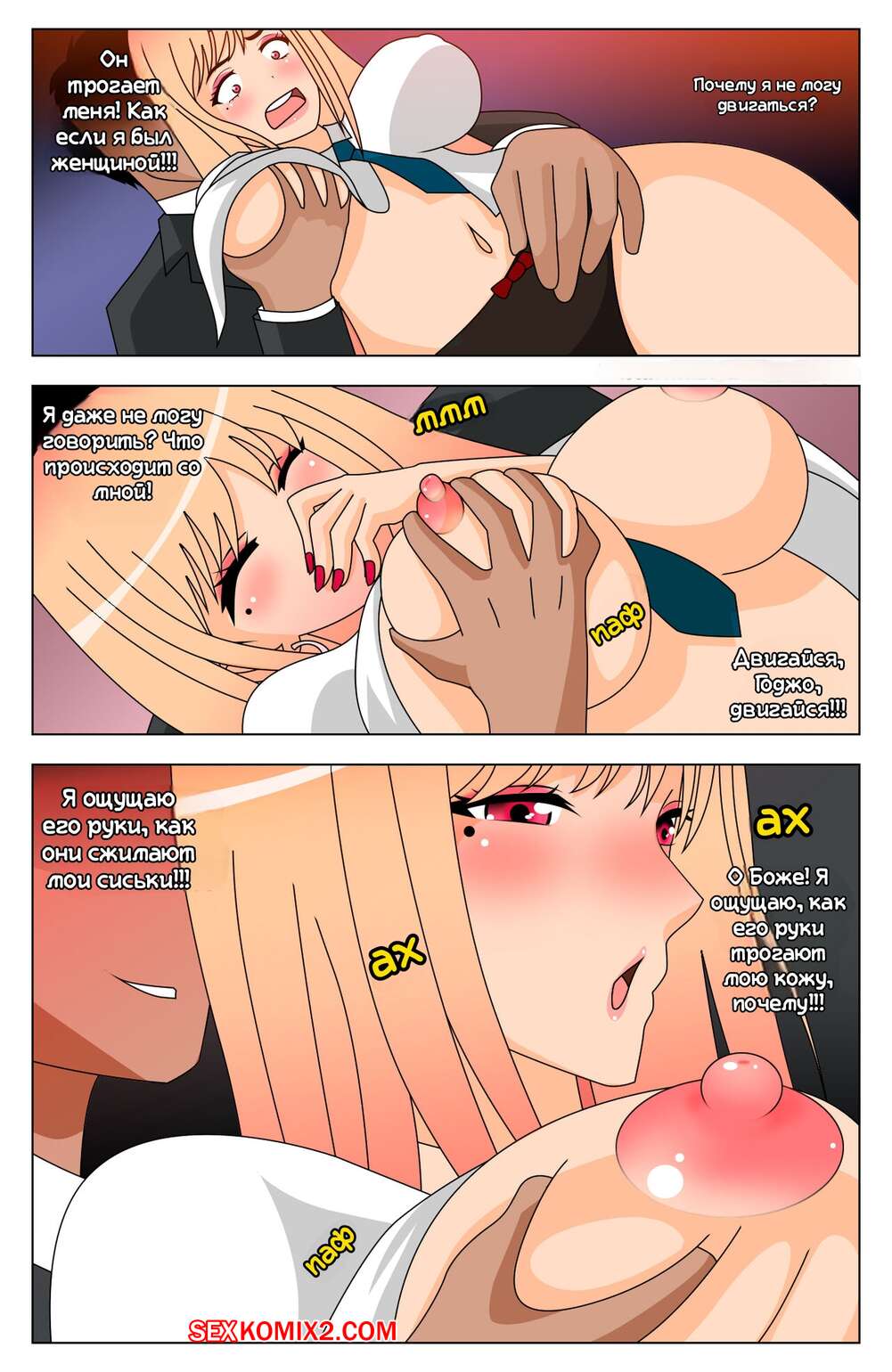 Порно комикс Эта фарфоровая кукла снова влюбилась. Наоборот. MyDollx Парень примеряет на себя тело горячей блондинки с шикарным телом. Девушка привлекает внимание своих дружков, которые дают девушке отсосать свои хуи и хорошенько ее трахают.