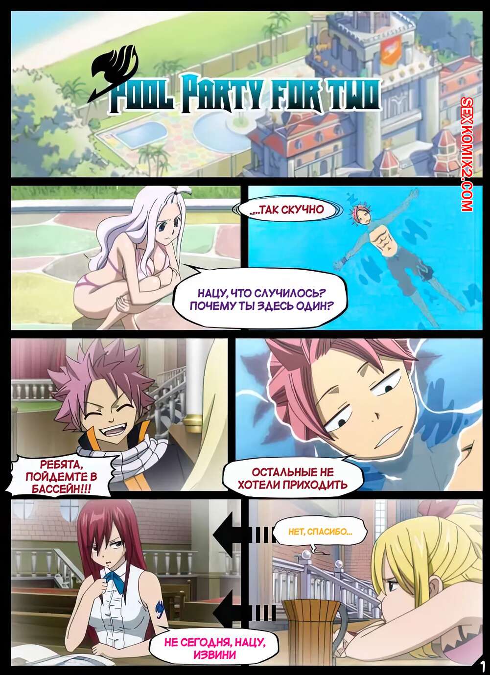 Порно комикс Fairy Tail. Вечеринка у бассейна для двоих. Pool party for two. Nyx. Горячая блондинка пришла на вечеринку у бассейна к своему другу, но они оказались там только вдвоем. Парень предложил девушке повеселиться и раздел ее, после чего стал трахать девушку.