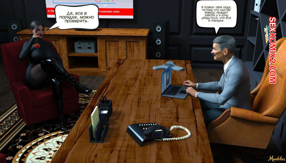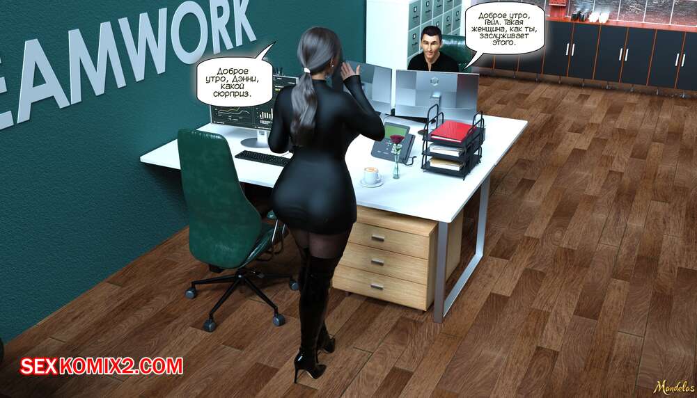 Порно комикс Приключения Гейл. Часть 5. The Adventures of Gail. Mandelas Дэнни смог помочь Гейл и удалил компромитирующее ее видео с ноутбука Холма. Красотка решила отблагодарить своего коллегу и дала ему выебать свою пизденку.