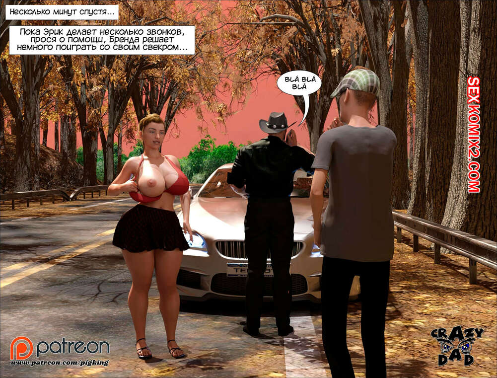 Порно комикс Свекр дома. Часть 36. Father In Law At Home. CrazyDad3D Бренда поехала на ферму с Эриком и его отцом. По дороге их машина сломалась и, пока жених ищет помощь, милфа соблазяет своего будущего свекра и дает ему себя выебать.
