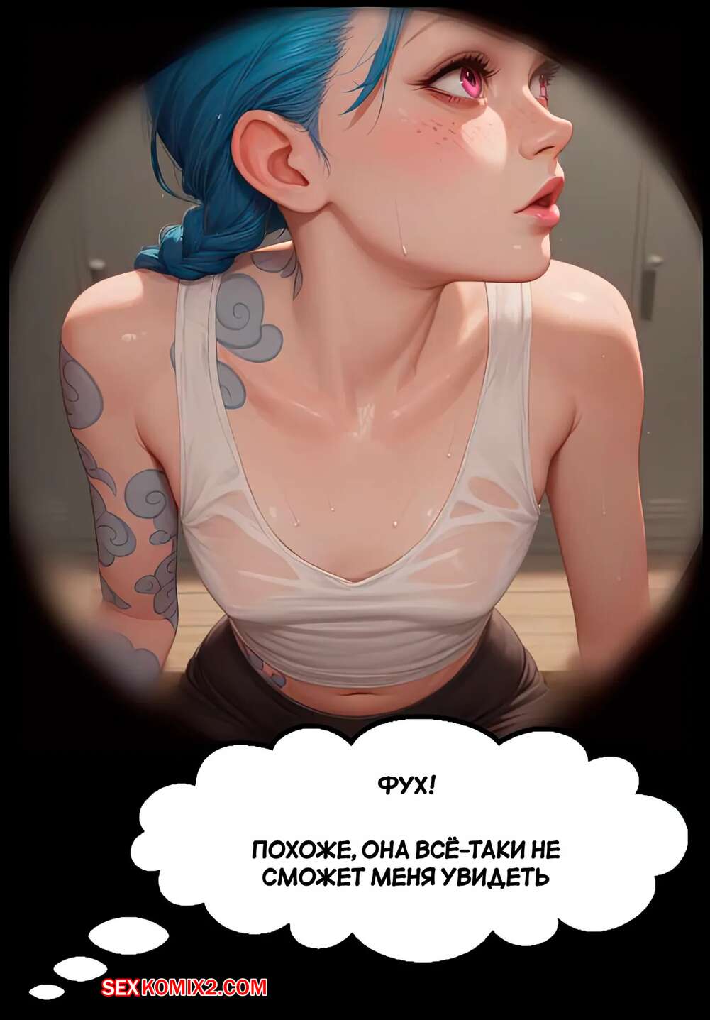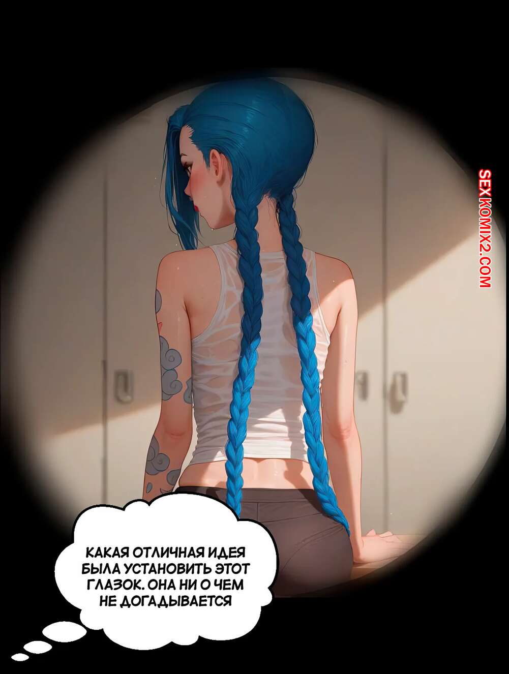 Порно комикс League of Legends. Похоть раздевалки. Часть 1. Locker Room Lust. Scarlet Meow Парень подглядывал за горячей красоткой Джинкс в раздевалке. Девушка спалила своего дружка и решила с ним повеселиться. Она встала на колени и отсосала хуй парня, после чего раздвинула ножки, чтобы он ее выебал.