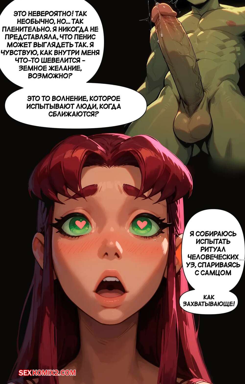 Порно комикс Teen Titans. Обещания даны для того, чтобы их выполнять. Часть 4. Scarlet Meow Рейвен и Старфайр были очень возбуждены и решили повеселиться с парнем Зверем. Красотки разделись и отсосали хуй друга, после чего дали ему себя хорошенько выебать.