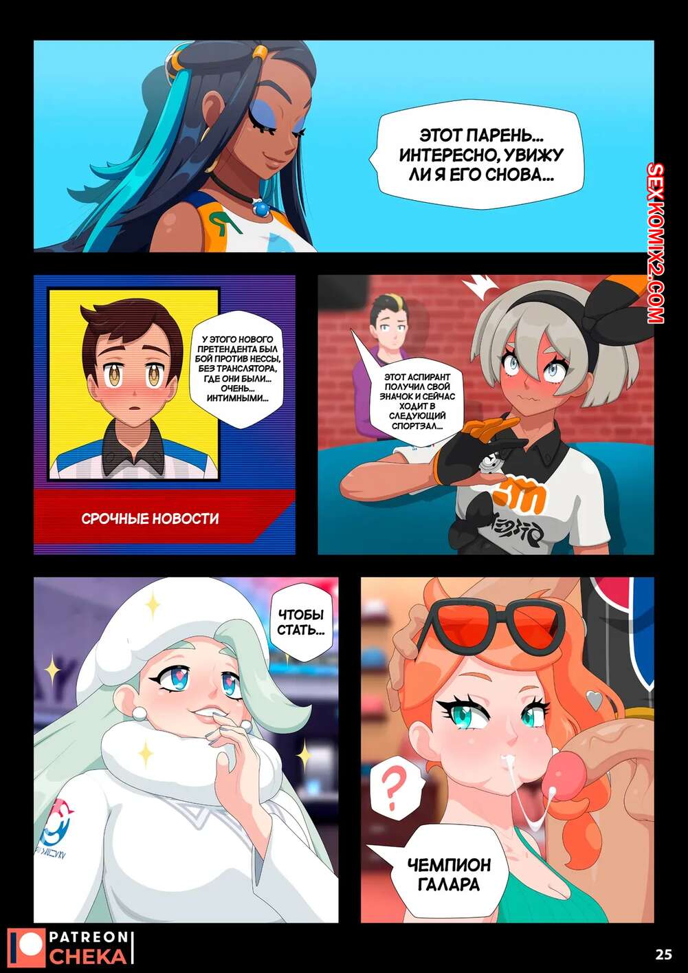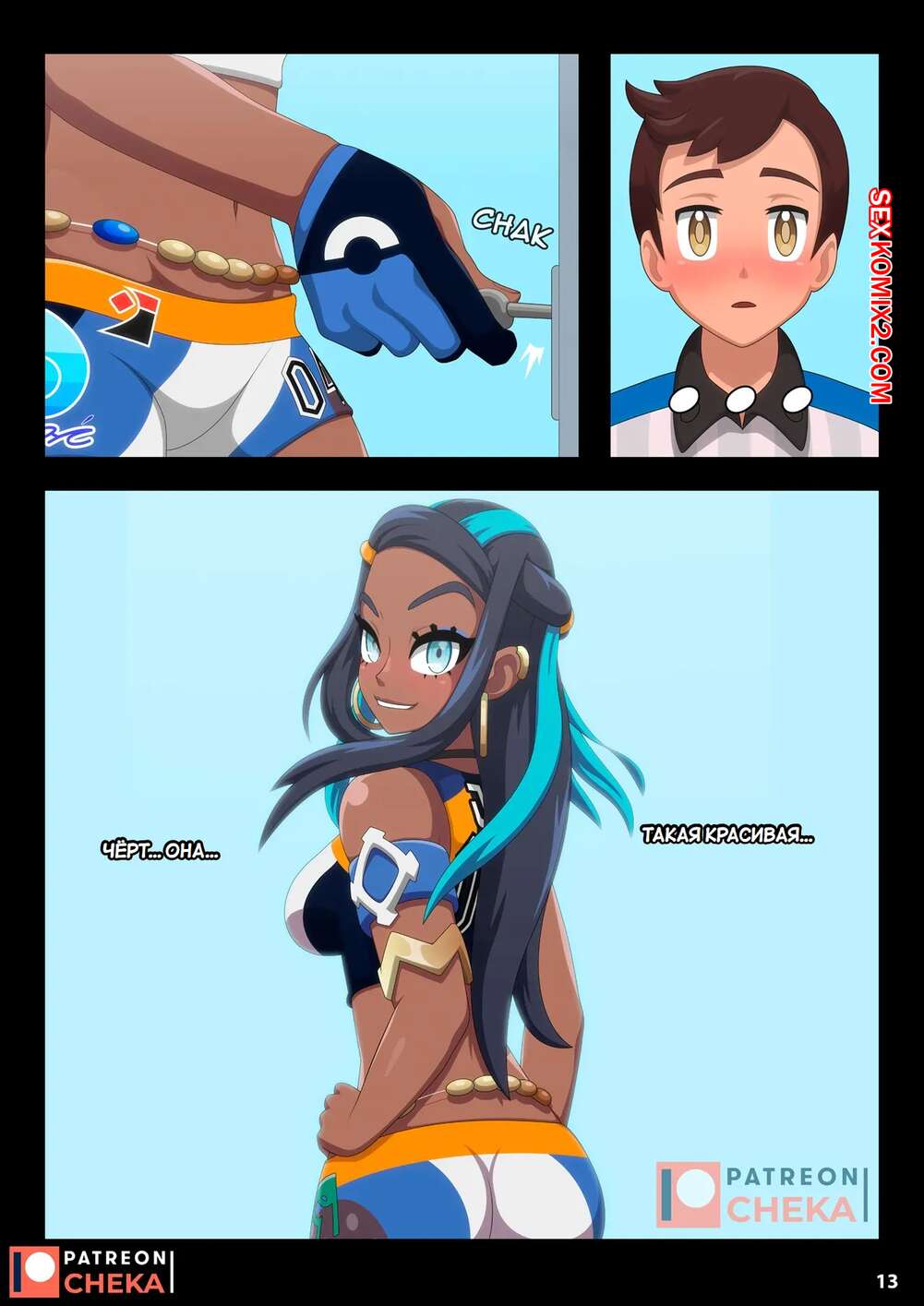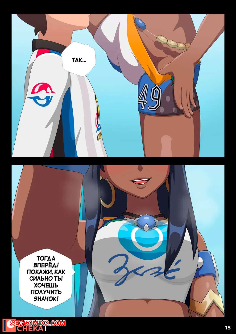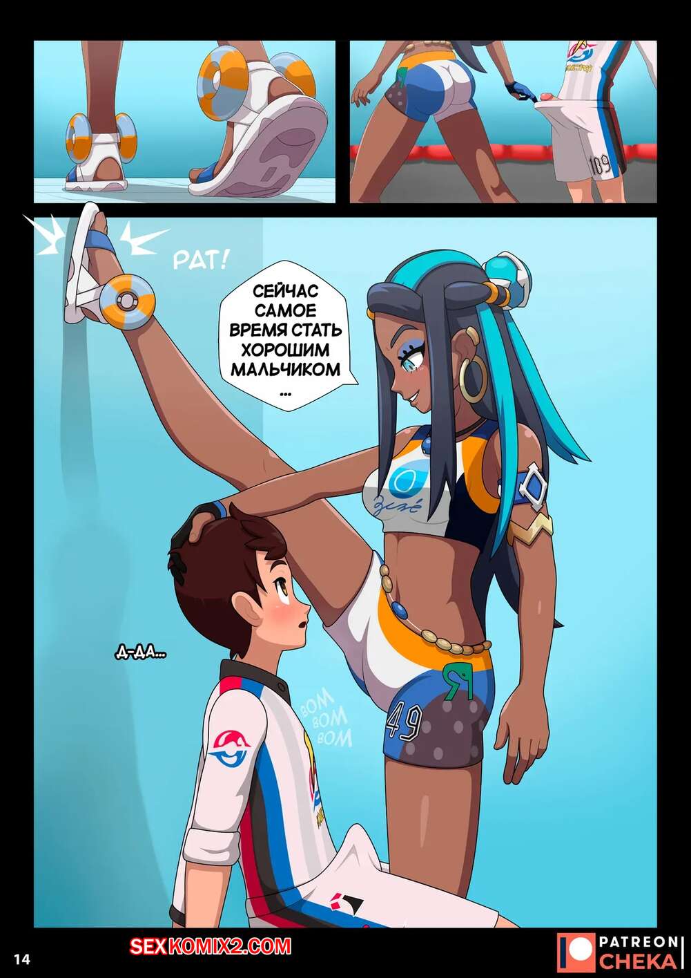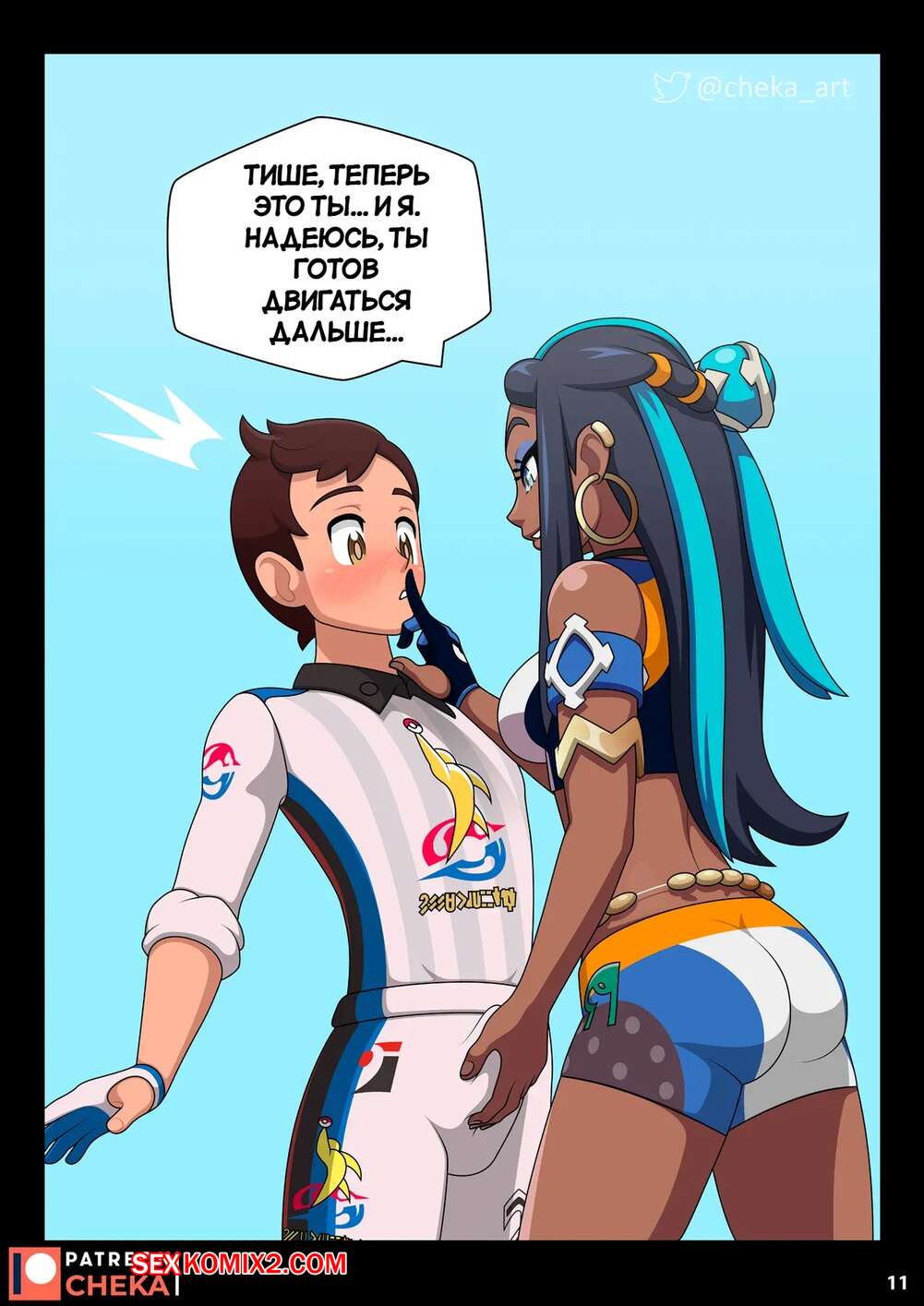 Порно комикс Pokemon. Боевой зал Нессы. Часть 2. Nessa Battle Gym. Cheka art Горячая брюнетка была очень возбуждена и решила повеселиться со своим дружком. Красотка разделась и дала парню отлизать свою пизденку, после чего он ее хорошенько выебал.