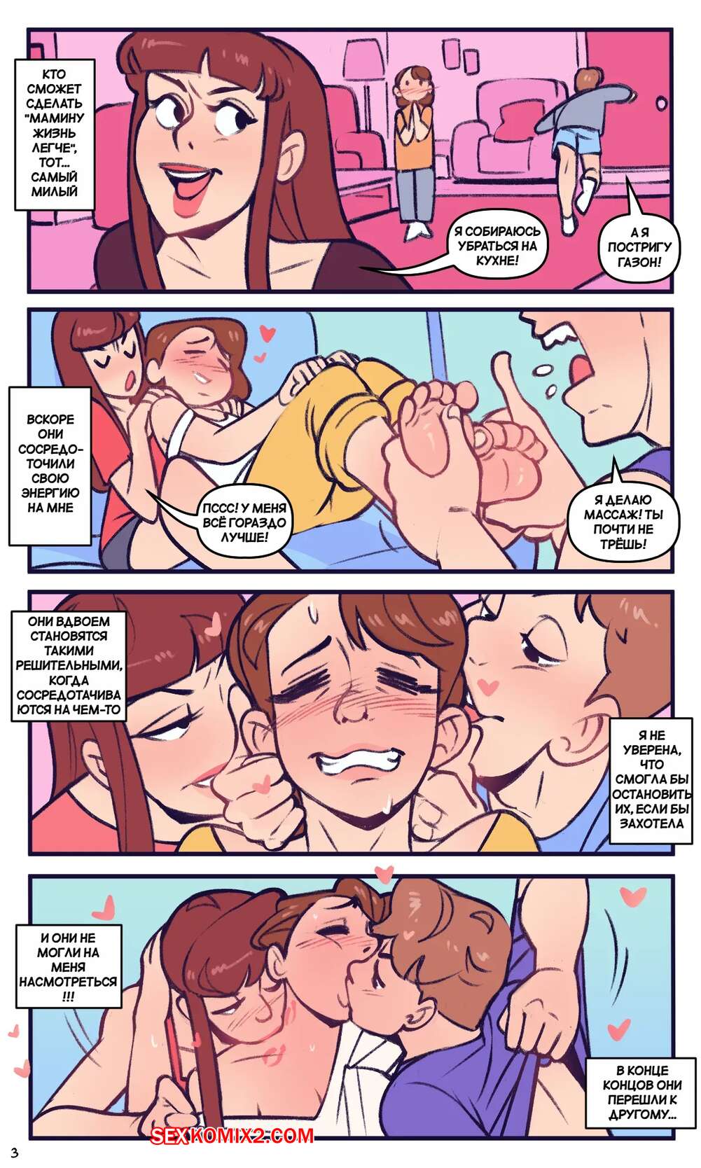 Порно комикс Двое для мамы. Two For Mum. Not Enough Milk. Брат с сестрой испытывают сексуальное влечение к своей горячей маме милфе. Они приходят к ней в спальню и соблазняют мамочку, после чего устраивают страстную групповуху.
