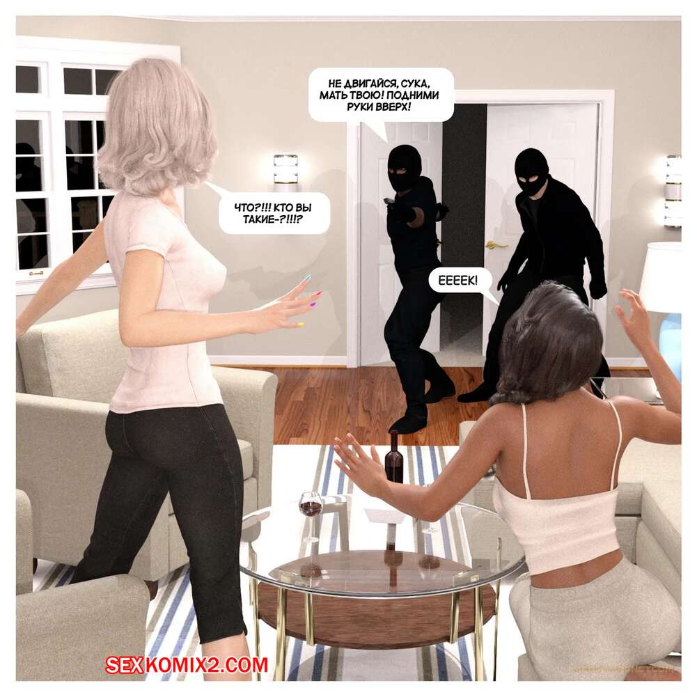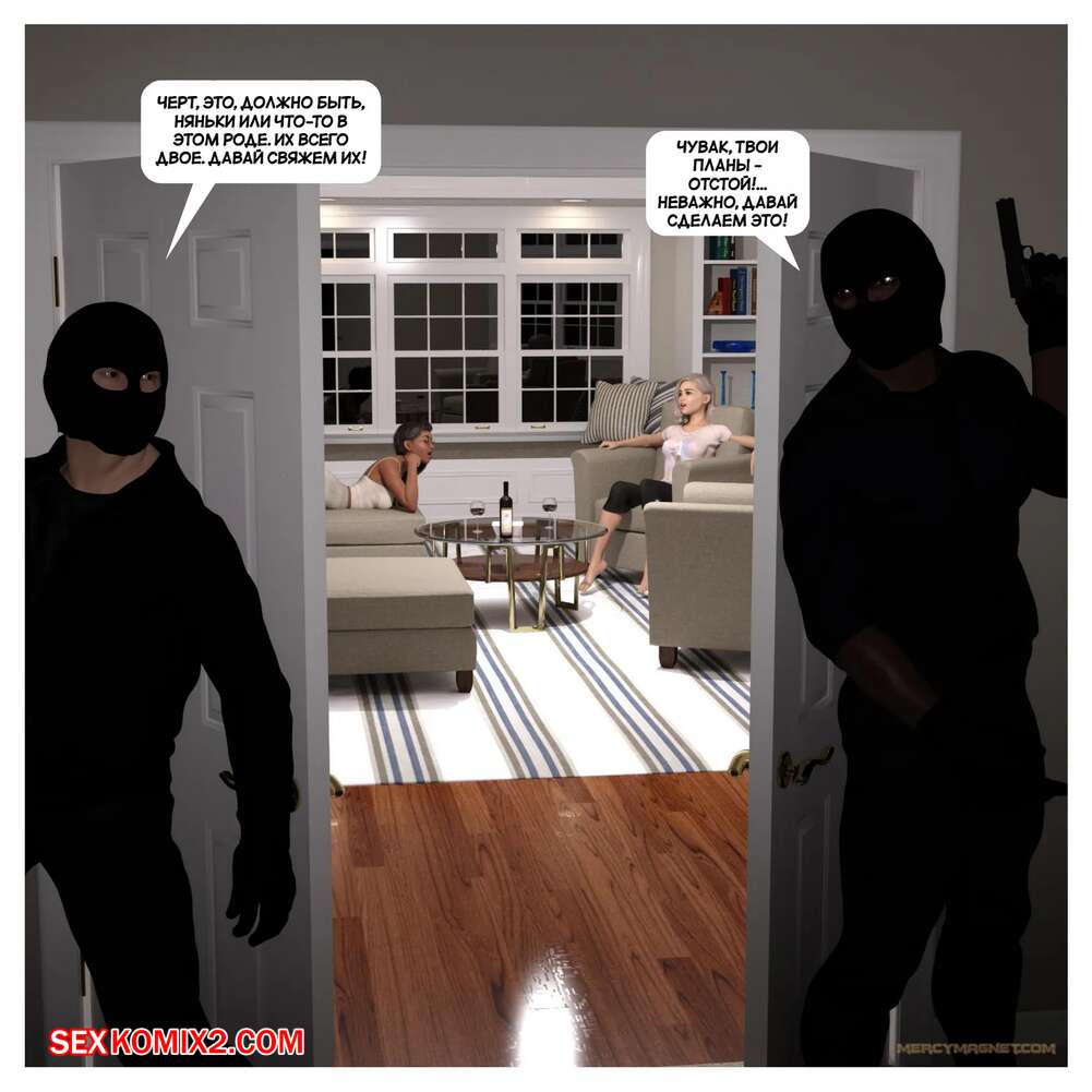 Порно комикс Вторжение в дом. Часть 1. Home Invasion. MercyMagnet Два бандита ворвались в дом к богатым девушкам. Они угрожали им оружием и заставили красоток раздеться, после чего дали им отсосать свои большие хуи и хорошенько выебали девушек.