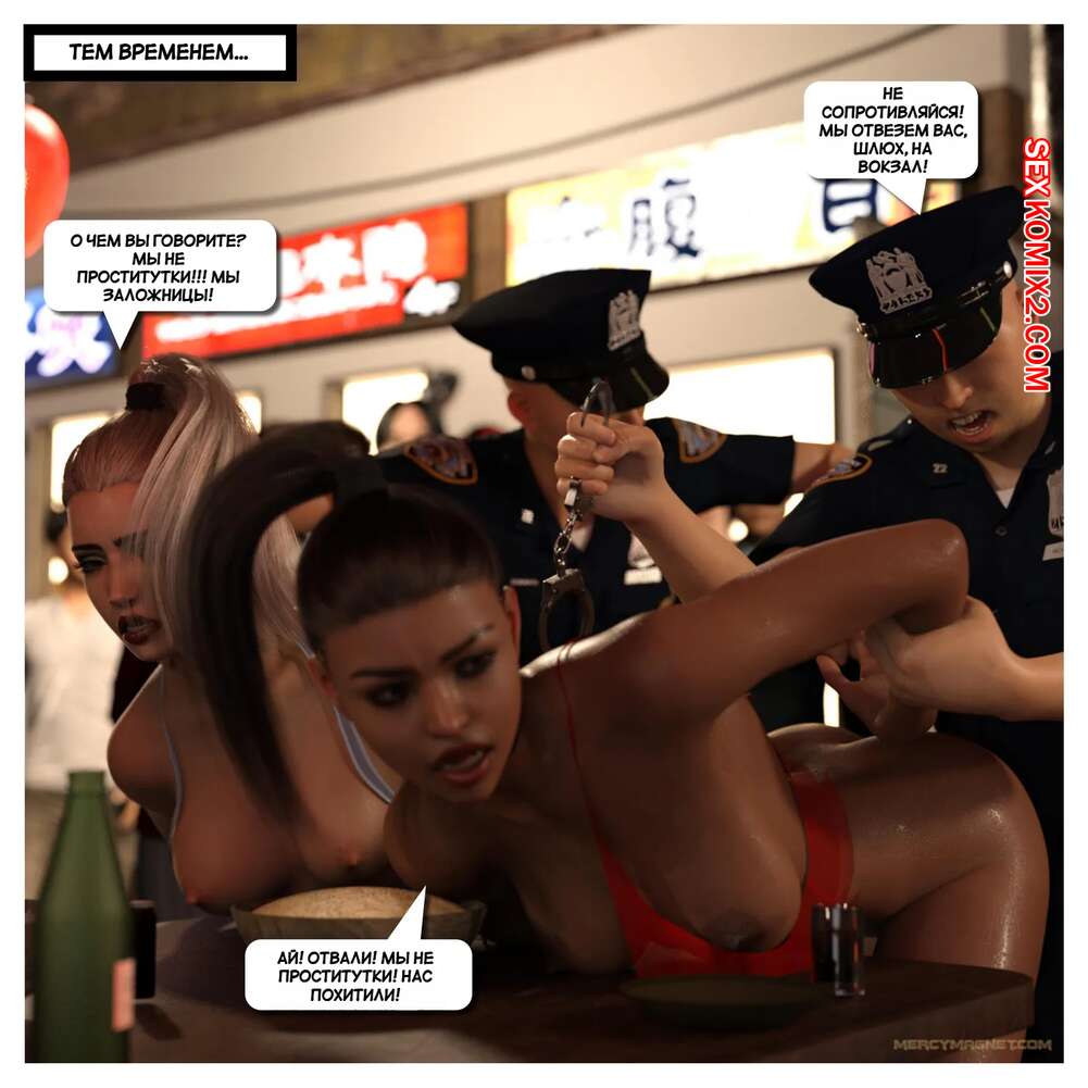 Порно комикс Вторжение в дом. Часть 2. Home Invasion. MercyMagnet Горячим красоткам удалось выбраться из клетки и они спешат совершить побег. Их поймали темнокожие парни, которые стали угрожать девушкам ножами, желая их выебать.