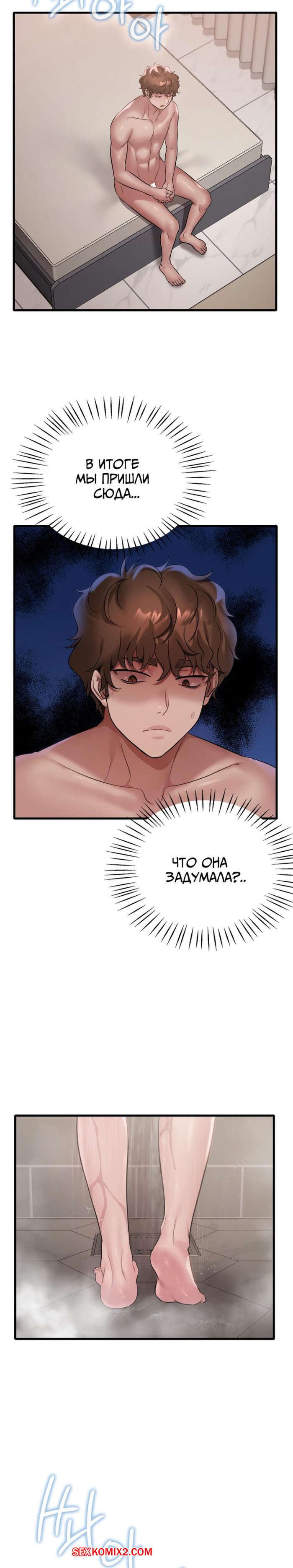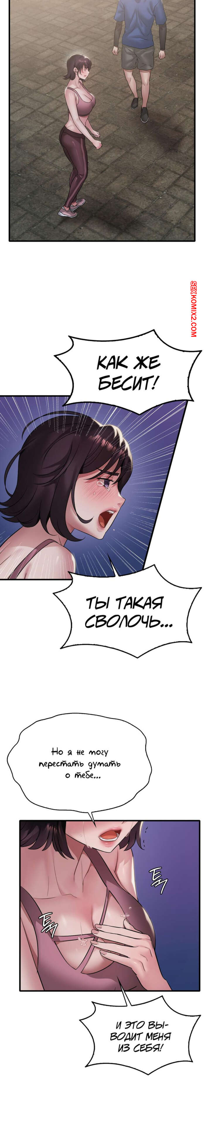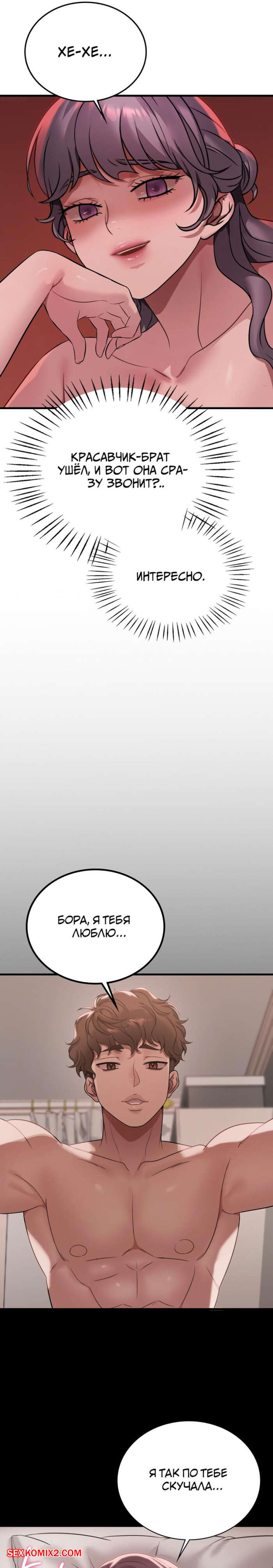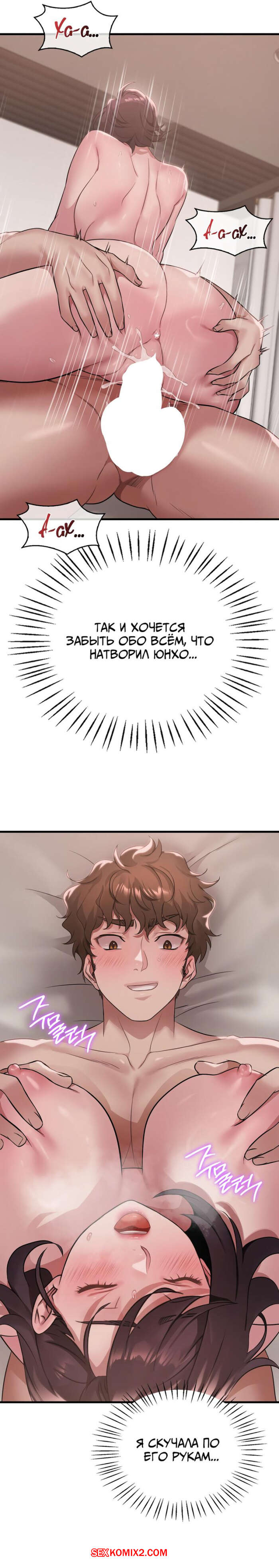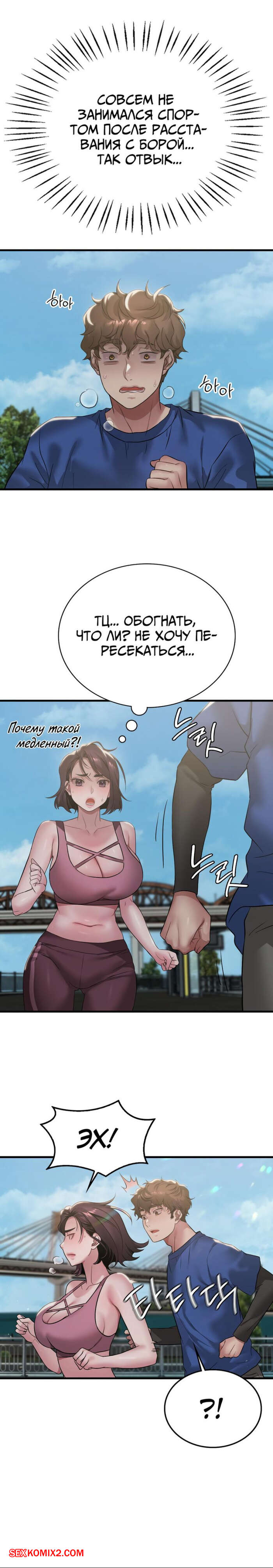 Порно комикс Она хочет опьянеть. Часть 84 и 85 и 86. cuhago sipeun gnher Горячая брюнетка вернулась с пробежки и пошла принять душ. Выйдя из ванны, красотка уложила своего дружка на кровать и оседлала его большой хуй, чтобы он ее хорошенько выебал.