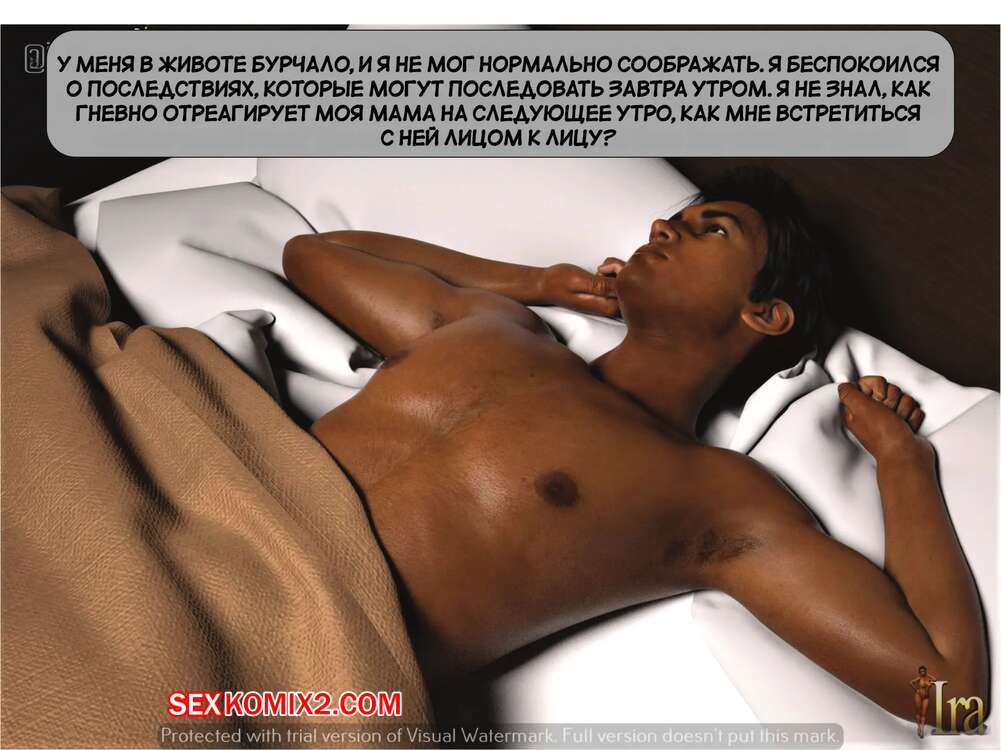 Порно комикс Мама и я. Часть 4. Mom and Me. Silk Route, Ira Raman Горячая милфа проснулась и спалила своего сына с ее трусиками в руках. Парень убежал в комнату, но мамочка пришла туда к нему и помогла ему кончить с помощью ротика.