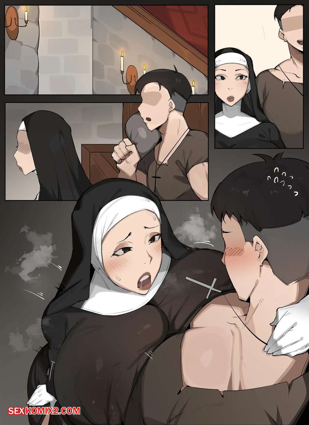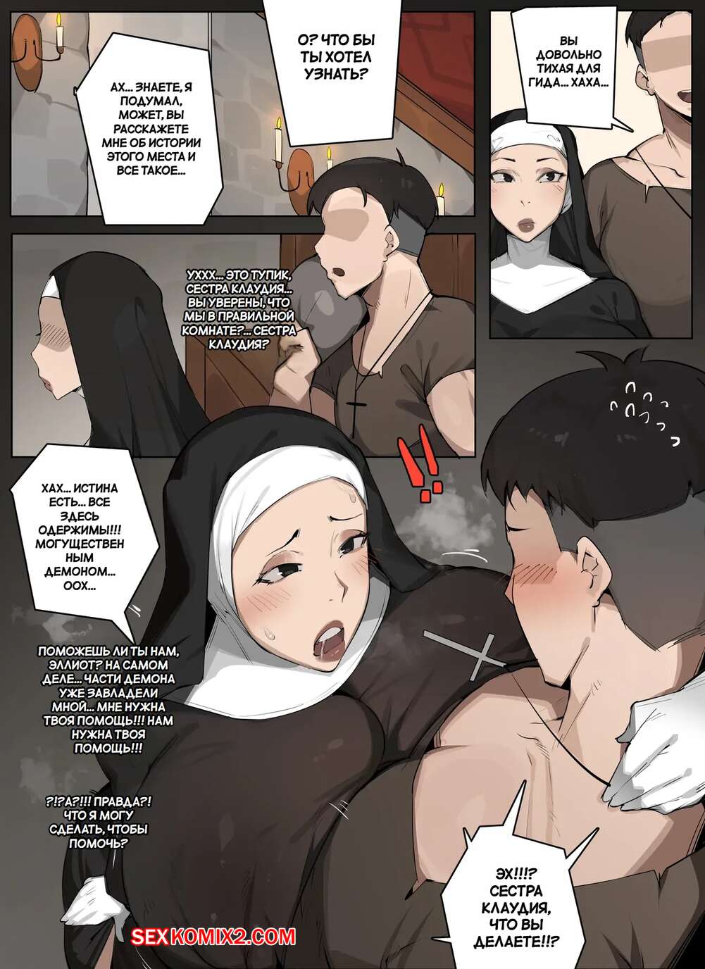 Порно комикс Мольба о сексе. Pray For Sex. Elijahzx Молодой парнишка устроился работать в церковь, где привлек внимание сексуальной монашки. Она уединилась с парнем и стала тереть его член о свою пизденку, от чего парень быстро кончил.