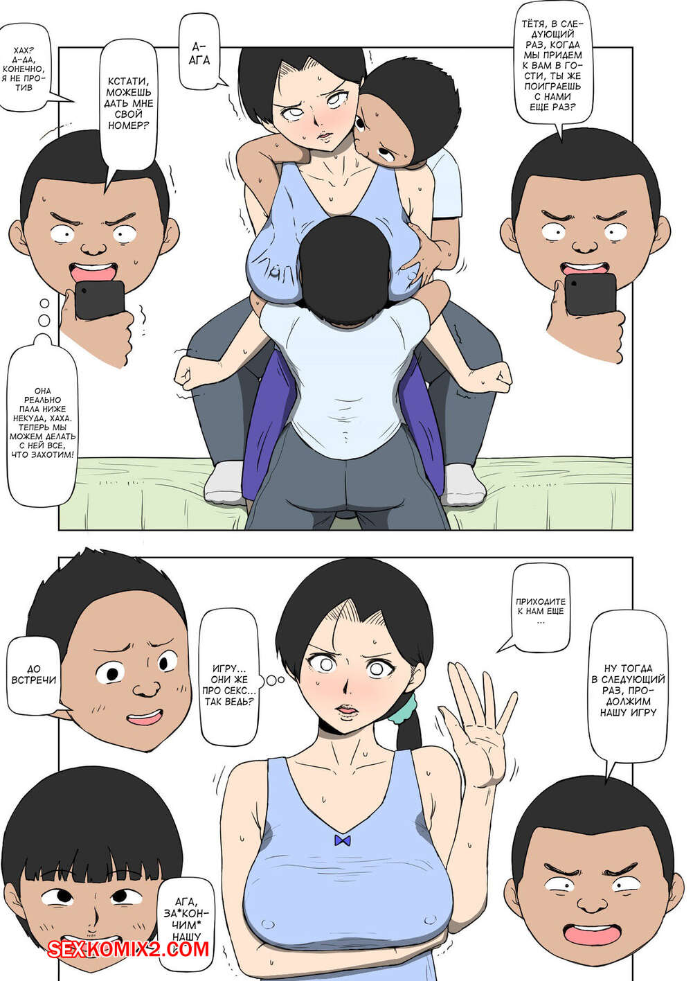 Порно комикс Мои друзья спят с моей мамой. Amahara Горячая милфа с шикарным телом обожает трахаться. Она соблазняет дружков своего сына и сосет их большие хуи, после чего дает им себя хорошенько выебать, получая огромное удовольствие.