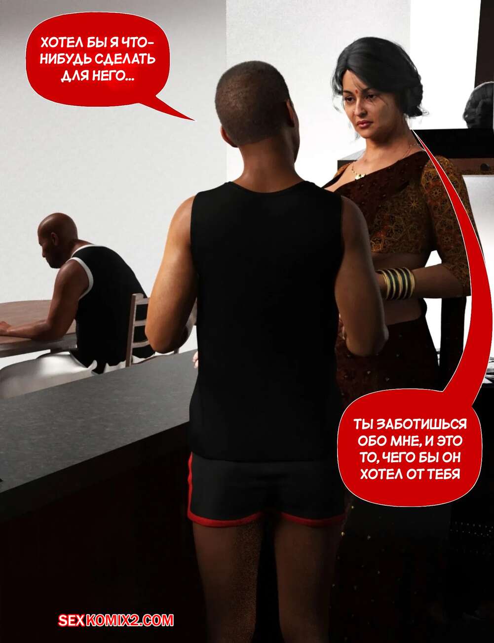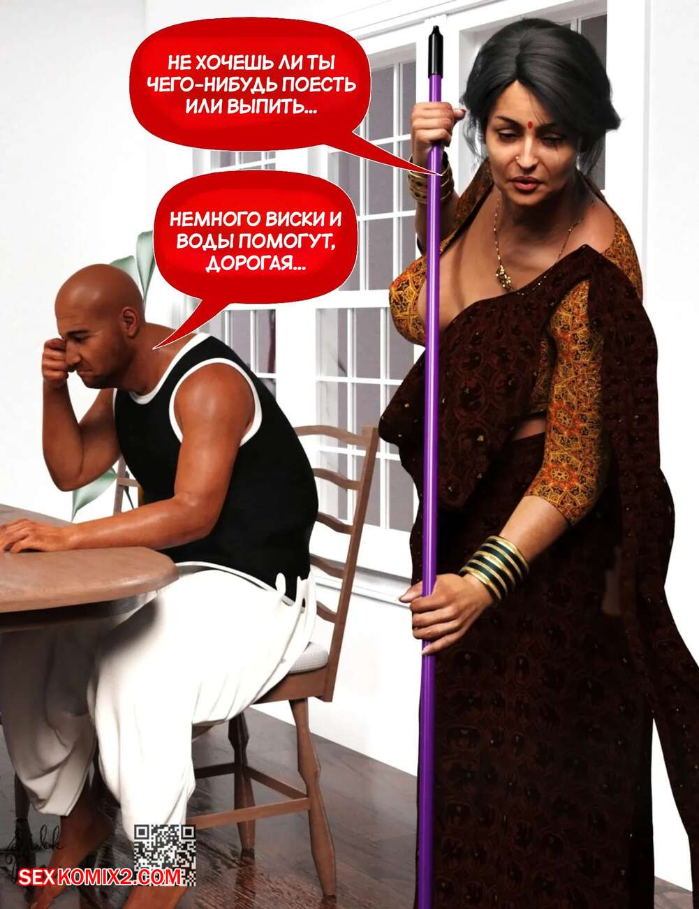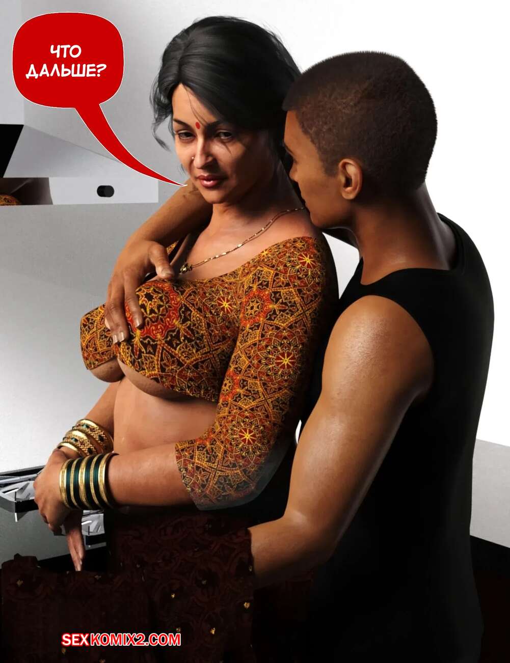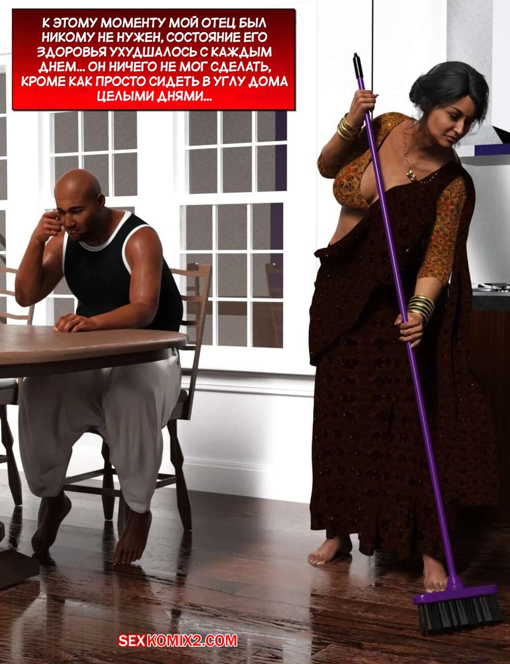 Порно комикс Мама и я. Часть 9. Mom and Me. Silk Route, Ira Raman Горячая милфа занималась делами по дому, пока ее муж просто сидел без дела. Сынок красотки подошел к ней сзади на кухне и стал ласкать мамочку, желая ее выебать.