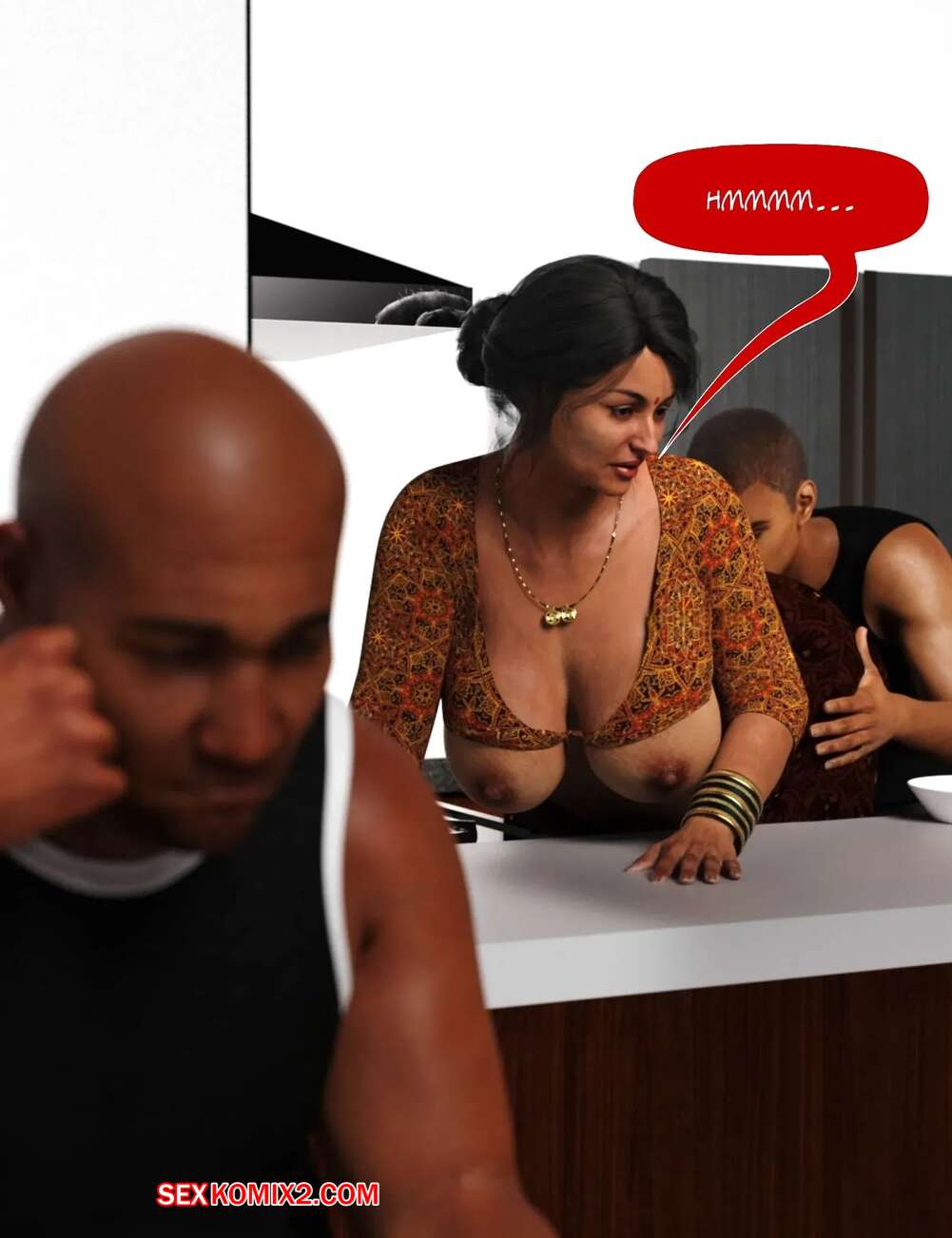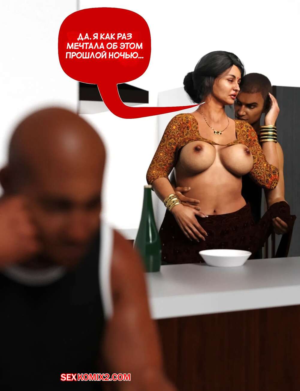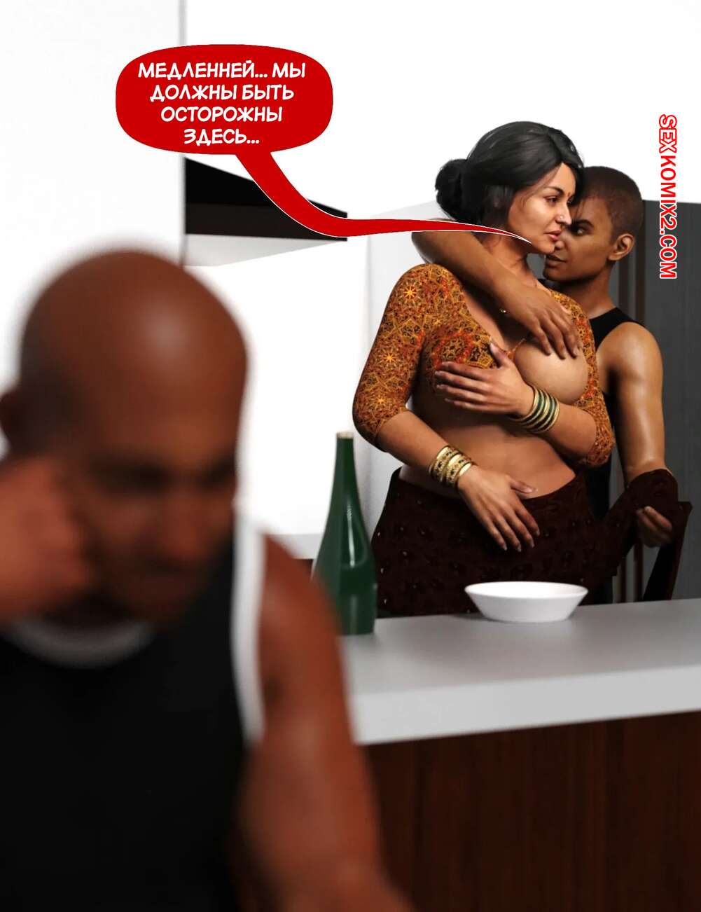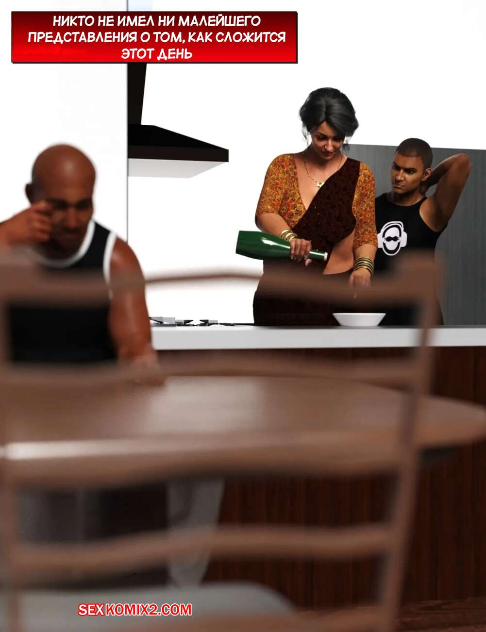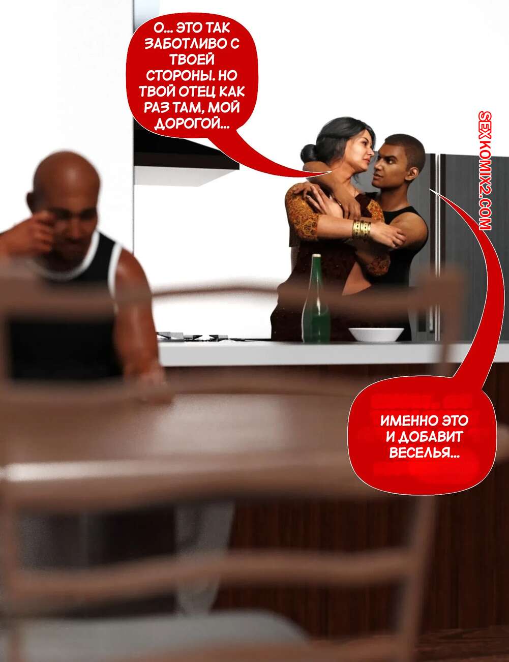 Порно комикс Мама и я. Часть 9. Mom and Me. Silk Route, Ira Raman Горячая милфа занималась делами по дому, пока ее муж просто сидел без дела. Сынок красотки подошел к ней сзади на кухне и стал ласкать мамочку, желая ее выебать.