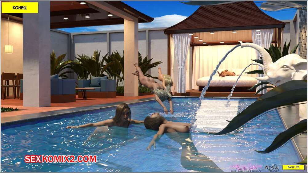 Порно комикс Ночевка у Джессики. Часть 1 и 2. Sleepover at Jessicas. ST 9Pol Горячие подруги устроили ночевку у Джессики и стали соблазнять отца девушки. Красотки разделись перед взрослым мужчиной и отсосали его член, после чего дали ему выебать себя по очереди.