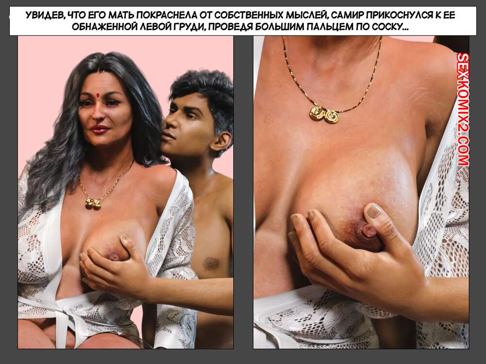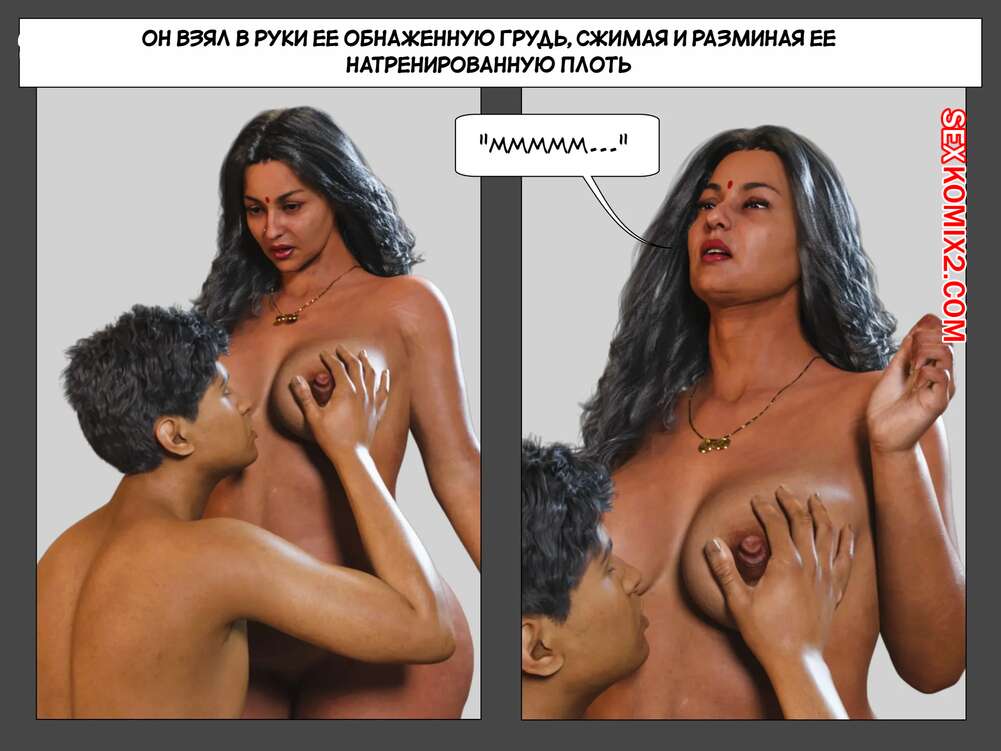 Порно комикс Мама и я. Часть 15. Mom and Me. Silk Route, Ira Raman Горячая милфа осталась наедине со своим возбужденным сыном. Парень стал ласкать большие сиськи мамочки и тереться членом о ее пизденку, желая соблазнить милфу и заняться сексом.