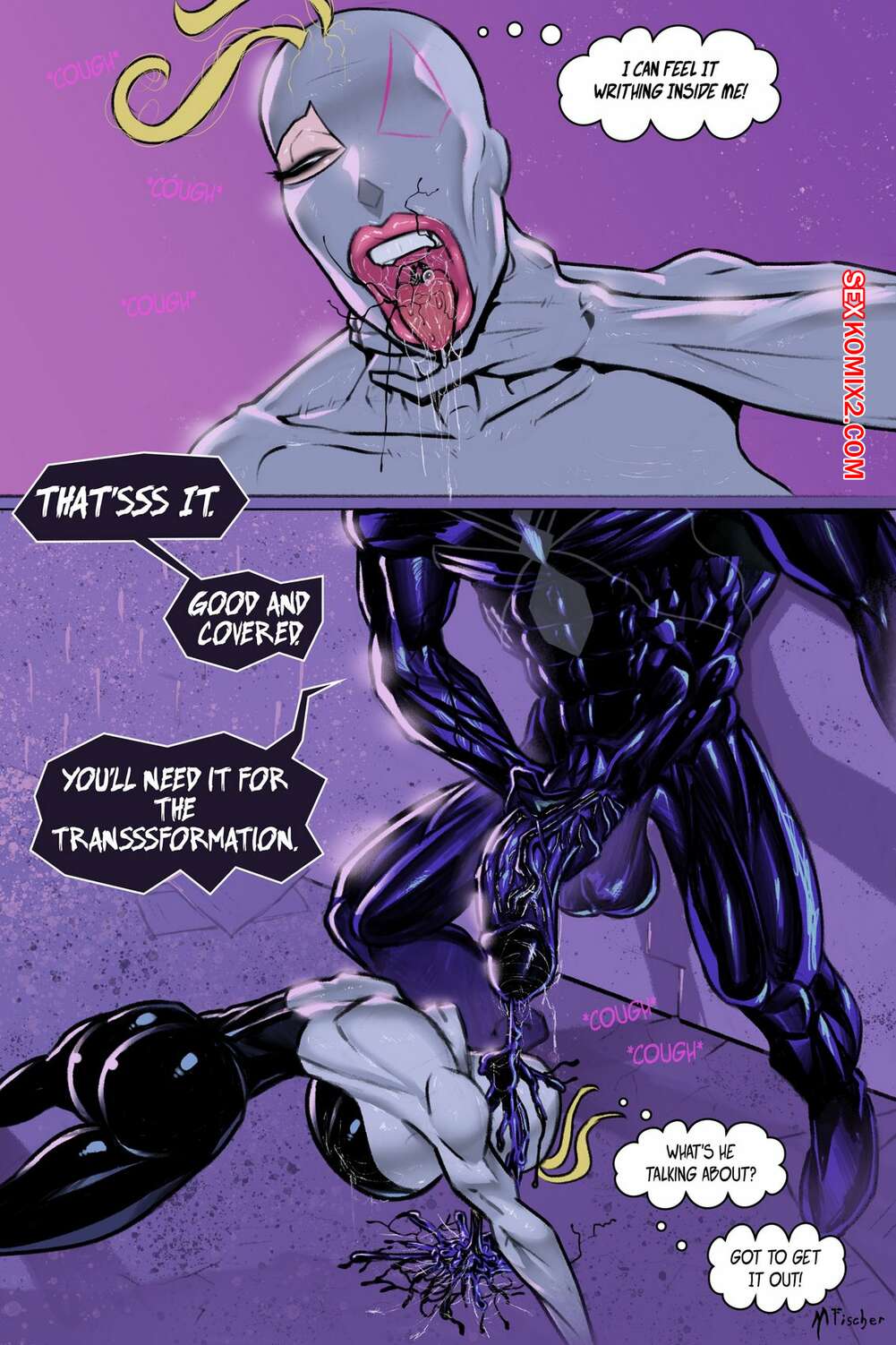 Порно комикс Паук-Гвен против Венома. Spider-Man. Meinfischer. Англ. Бедняжка Гвен попала в лапы ненасытного симбиота. Он безустанно трахал девушку, со временем она начала получать от этого удовольствие.