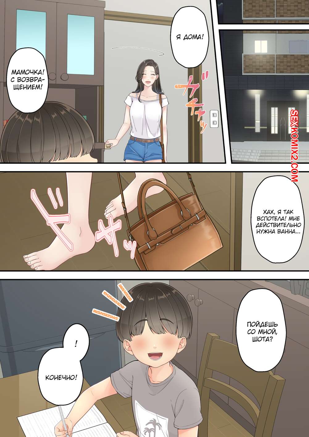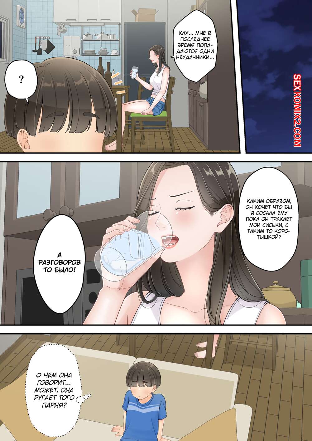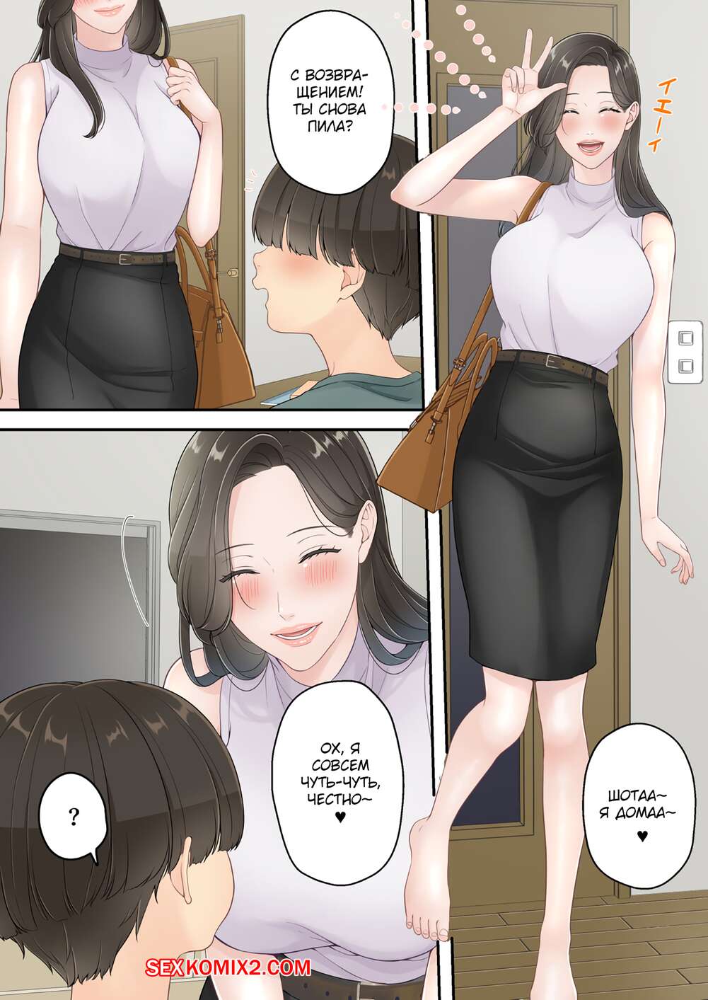Порно комикс Моя мама напилась и начала приставать ко мне. Yuriko Club Горячая милфа напилась и сильно возбудилась. Красотка стала приставать к своему сыну и дрочить его член, после чего раздвинула ножки и дала сыну себя как следует выебать.