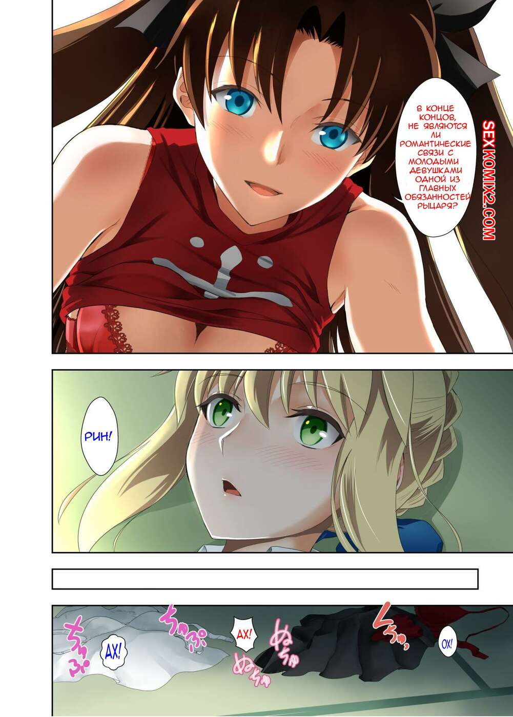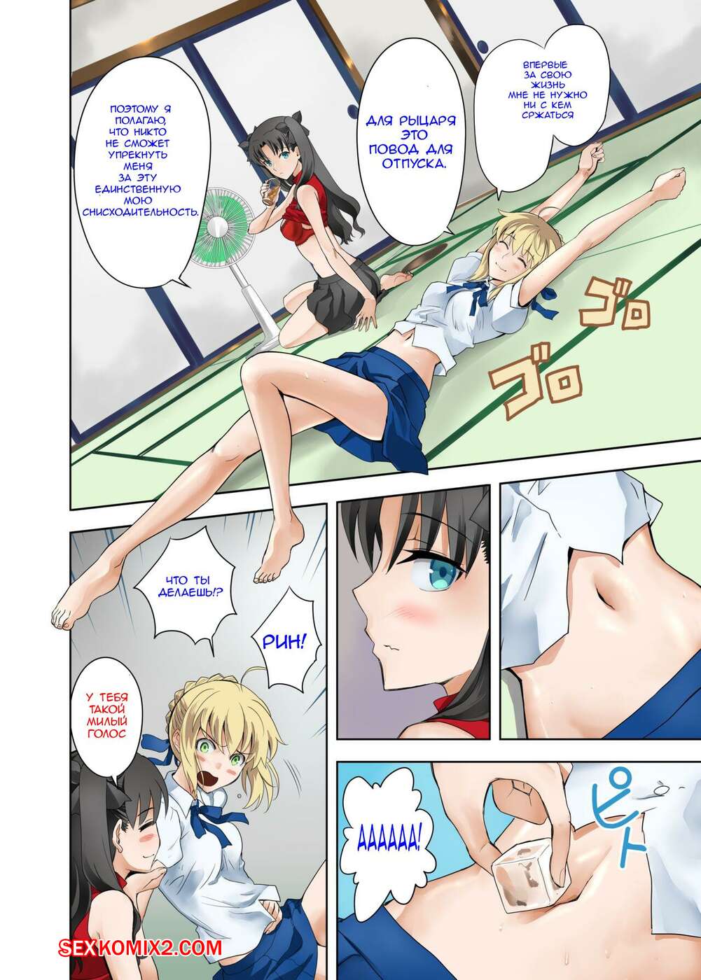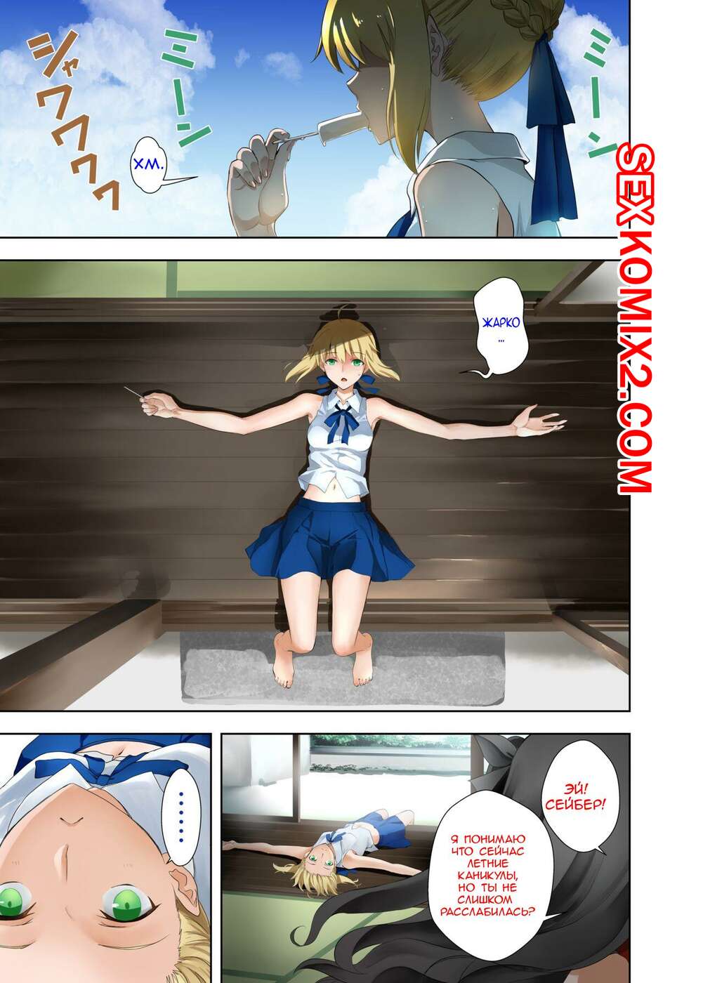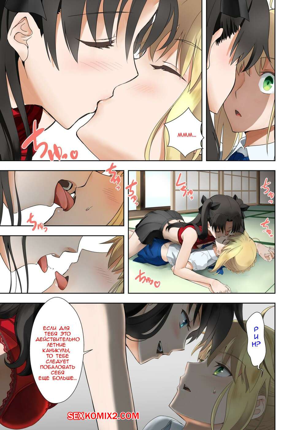 Порно комикс Летние Каникулы у Сэйбер. Kuroha Nue Горячие подруги были очень возбуждены и решили повеселиться. Девушки разделись и стали ласкать друг дружку, после чего занялись страстной лесбийской еблей.