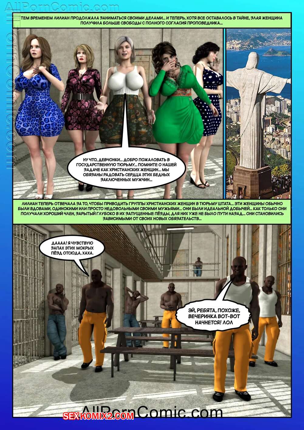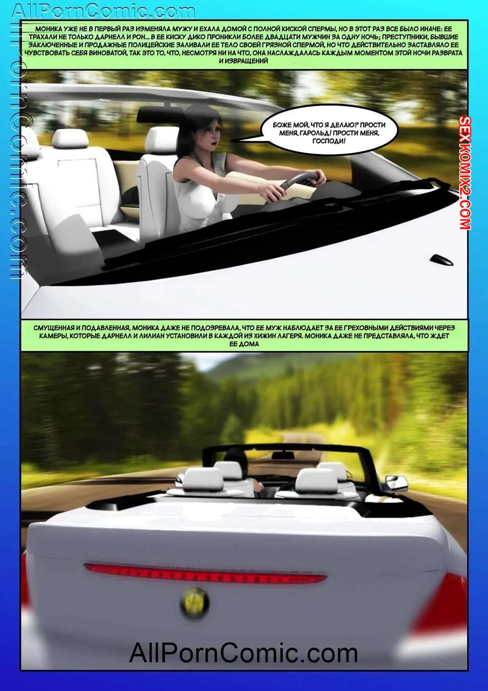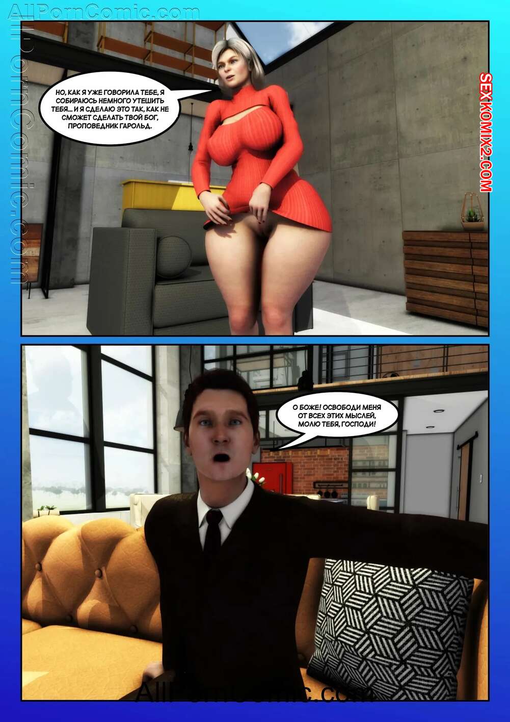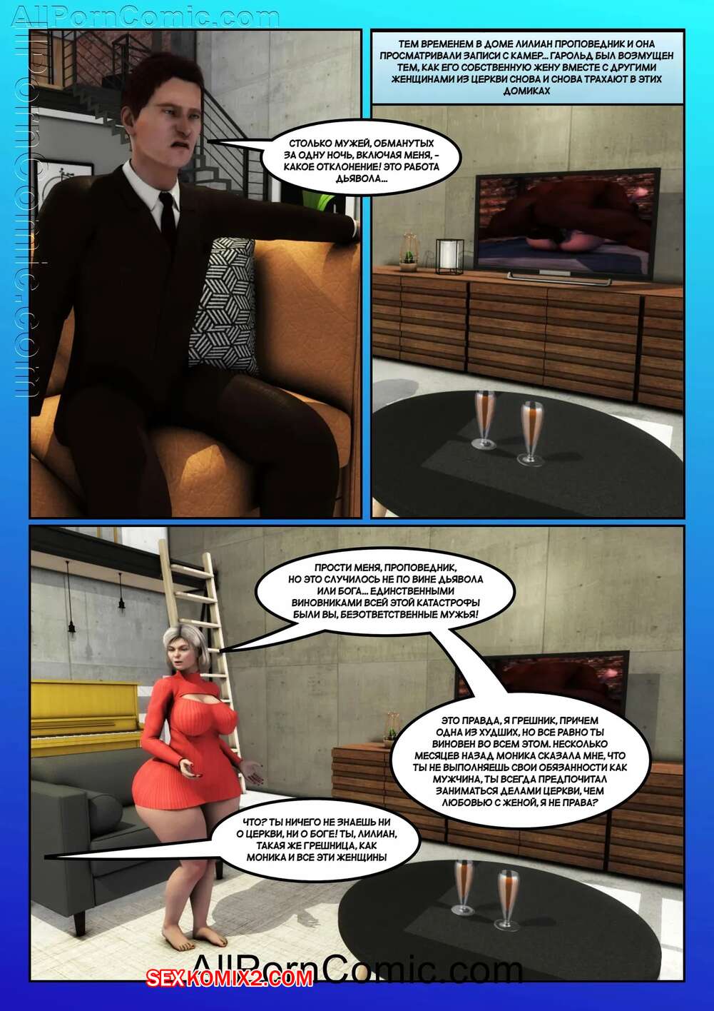 Порно комикс Жена проповедника. Часть 7. The Preachers Wife. Moiarte3D Горячая милфа застала своего мужа за изменой и решила ему отомстить. Она пригласила темнокожего парня к себе домой и дала ему себя как следует выебать, пока ее муж наблюдал за этим.