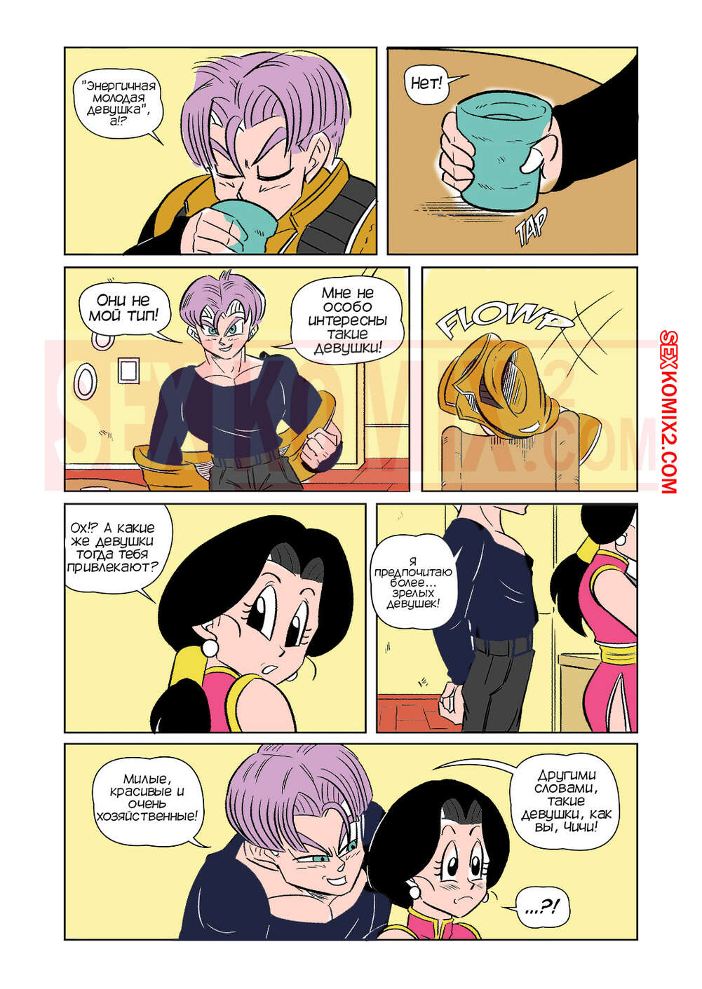 Порно комикс Dragon Ball. Переключатель вверх. Funsexydb. Парень пришел к своему другу, но дома его не было. Заботливая мама друга позвала парня в дом и предложила чай. Но он воспользовался моментом, чтобы трахнуть горячую милфу.