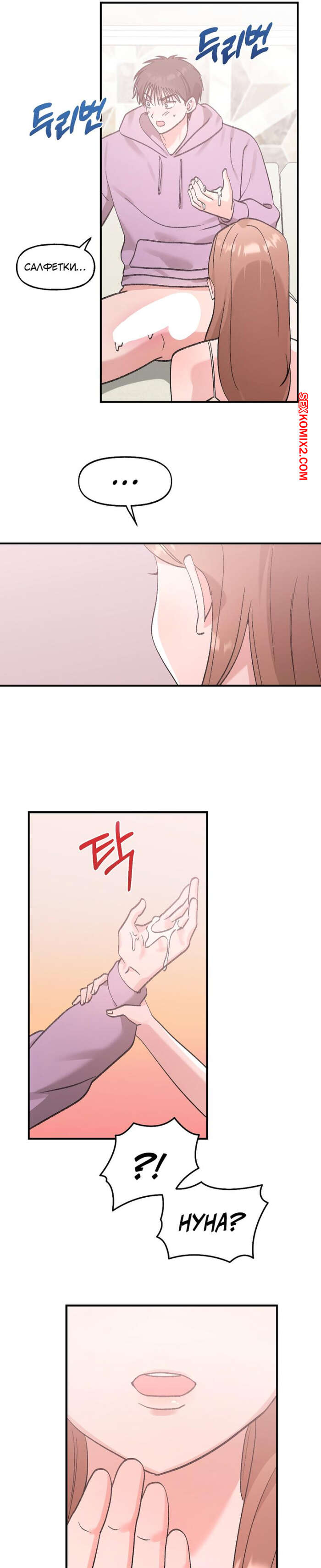 Порно комикс Непристойный розовый ХХ. Часть 19 и 20 и 21. Obscene Pink XX Горячая брюнетка была очень возбуждена и решила повеселиться со своим дружком. Она встала на колени и стала сосать большой хуй парня, желая поскорее ощутить его в себе.