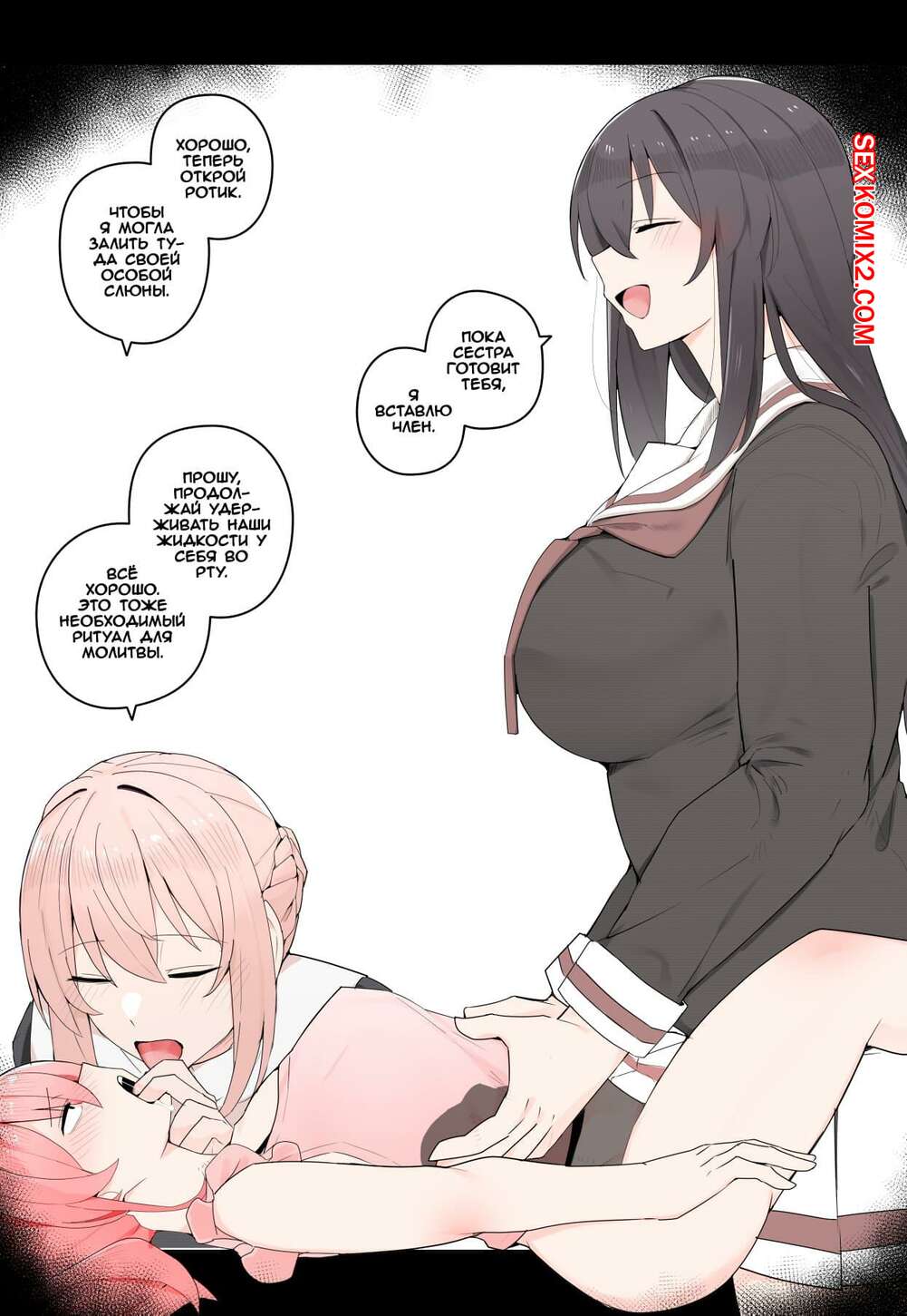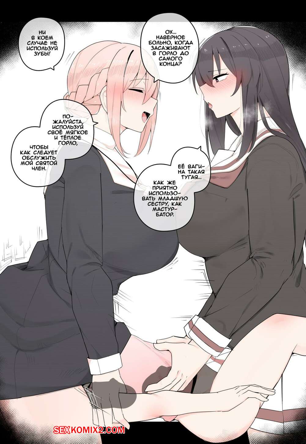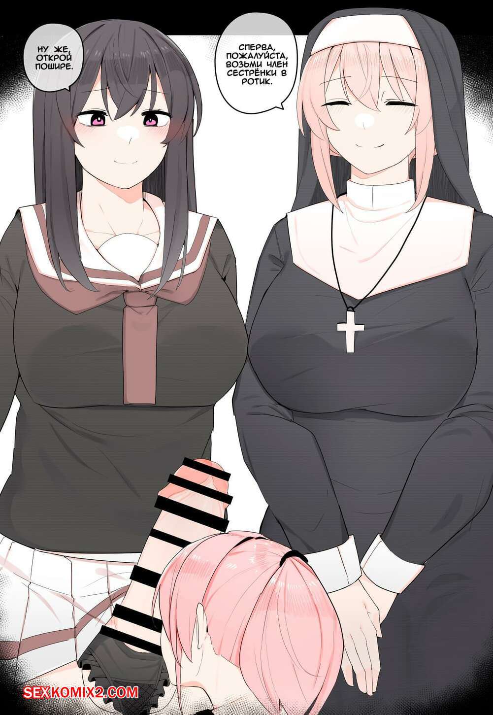 Порно комикс Тройничёк с сёстрами. Shimai to no 3P. Kassai Горячие красотки с большими членами были очень возбуждены и решили повеселиться со своей сестренкой. Они дали ей у себя отсосать, после чего хорошенько ее выебали.