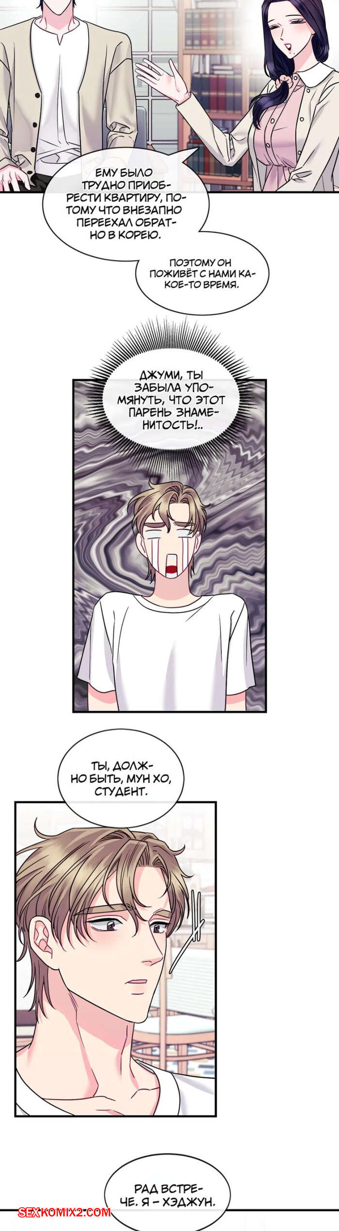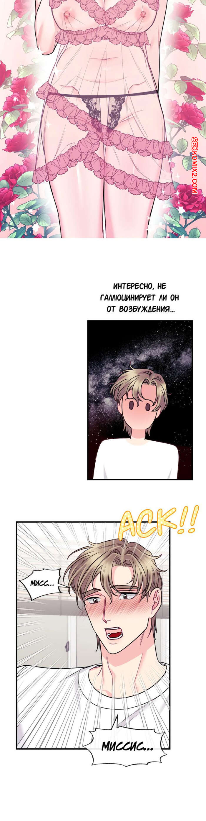 Порно комикс Дом любви. Часть 7 и 8 и 9. leobeu hauseu Горячая милфа была очень возбуждена и решила повеселиться с молодым парнем, который арендует у нее комнату. Красотка надела сексуальное белье и пригласила парня к себе, чтобы он ее хорошенько выебал.