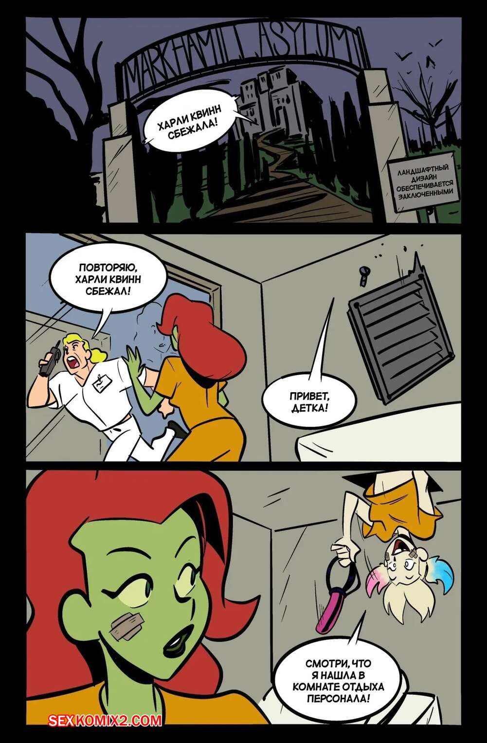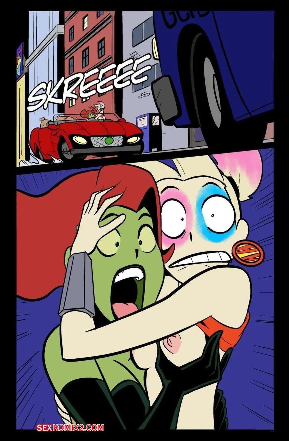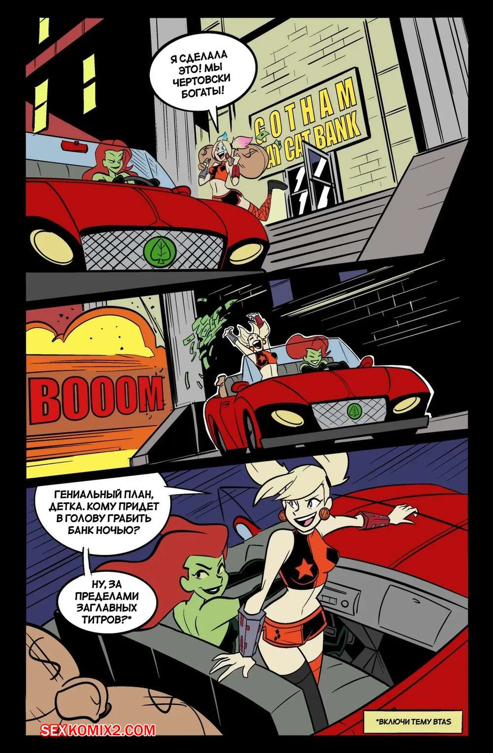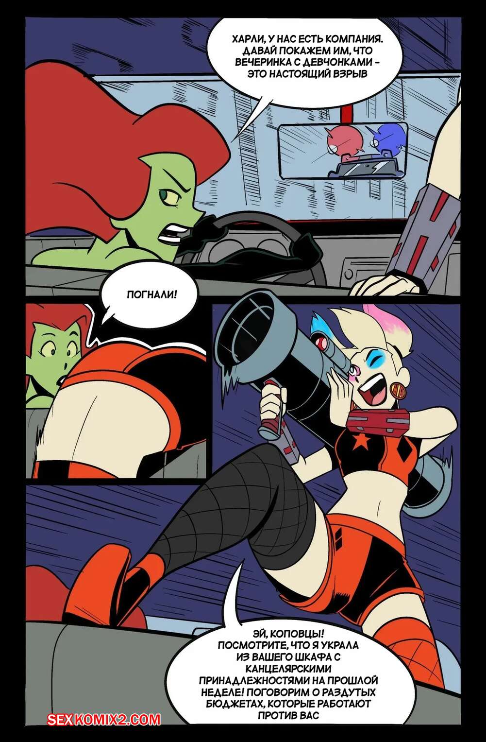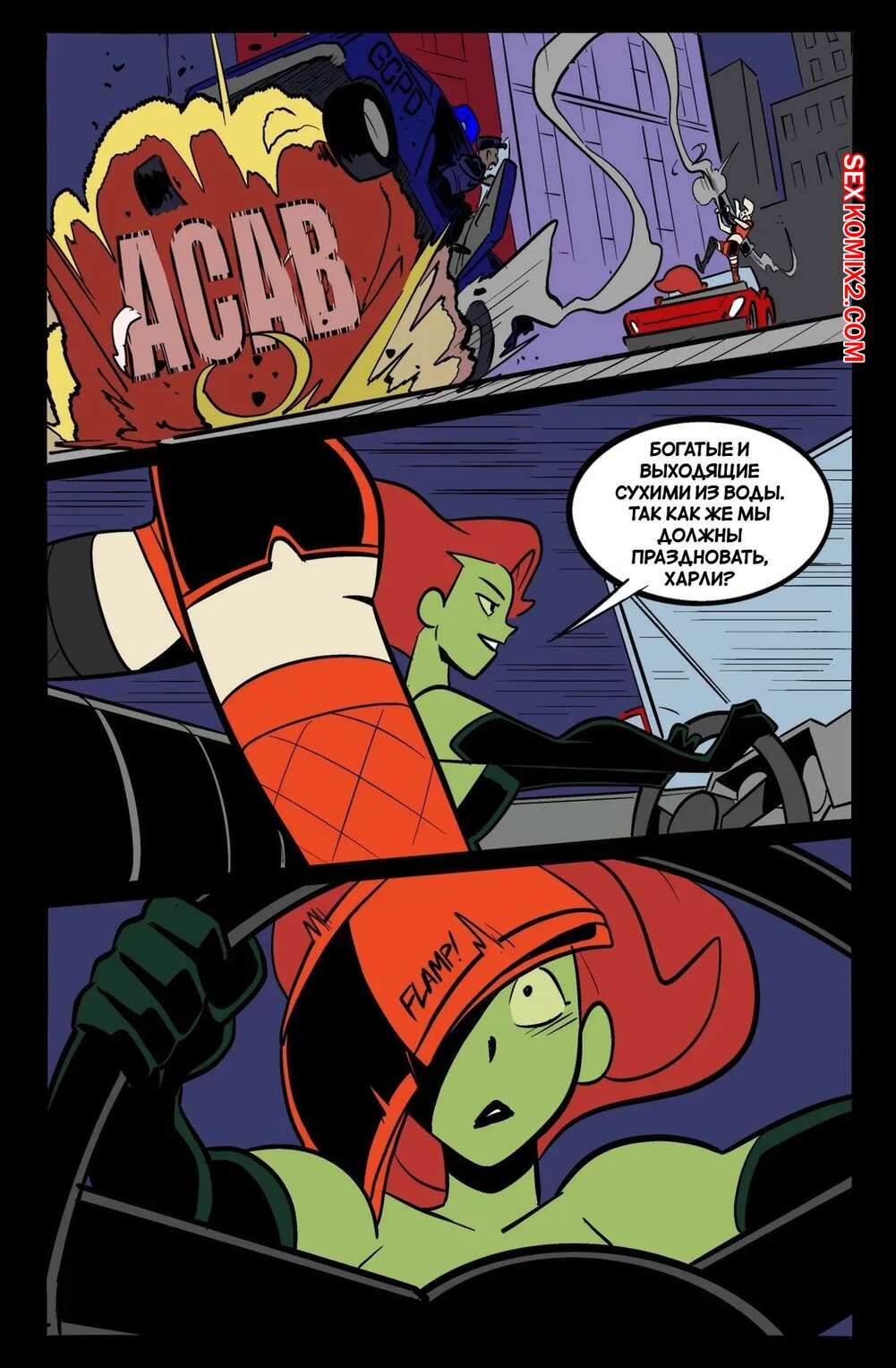 Порно комикс DC. Побег Айви и Харли. HarleyIvy Getaway. henshin tiger. Харли Квин и Ядовитый плющ ограбили банк и совершают побег. В процессе погони девушки решили повеселиться и стали заниматься лесбийской еблей, от чего попали в аварию.