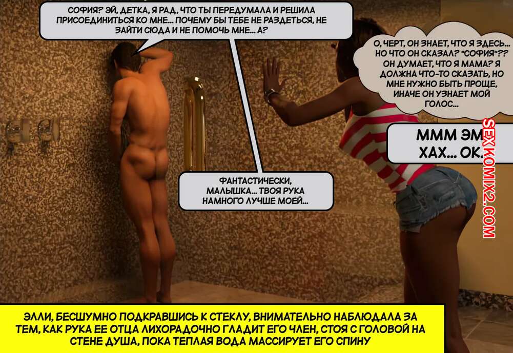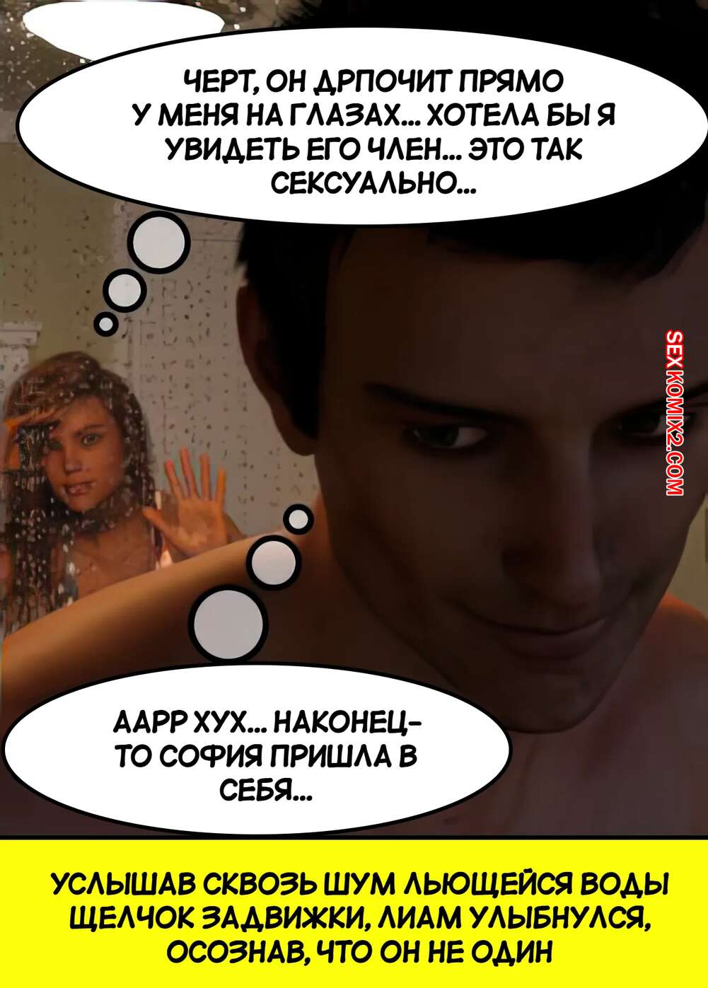 Порно комикс Понедельник. Последствия. Часть 1. Monday The Aftermath. ST9Pol. Горячая брюнетка застала парня в душе и возбудилась, увидев его большой хуй. Красотка стала дрочить хуй парня, доставляя ему удовольствие, от чего он кончил ей на лицо.
