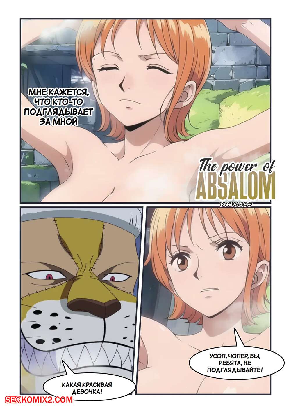 Порно комикс One Piece. Сила Авессалома. The power of Absalom. Kahoo Парень соблазнил свою рыжую подругу, желая с ней повеселиться. Красотка разделась и раздвинула ножки перед парнем, после чего дала ему выебать свою задницу и кончить в нее.