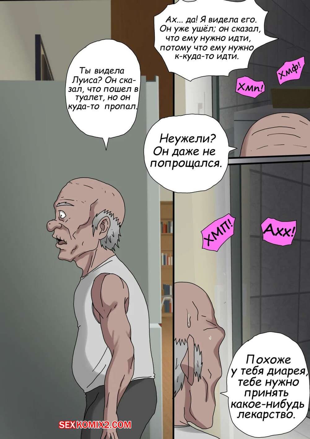 Порно комикс Греховная похоть. Часть 3.2 и 3.3. Sinful Lust Горячая милфа продолжает наслаждаться огромным хуем отца своего мужа. Оставаясь с ним наедине, красотка раздевается и сосет хуй старика, после чего дает ему себя выебать.