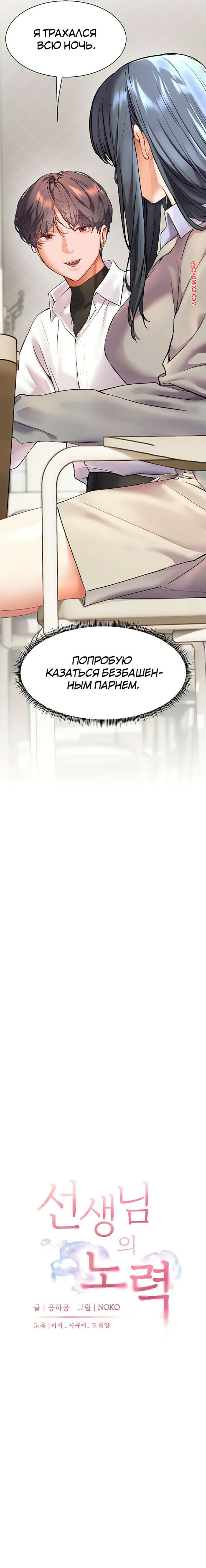 Порно комикс Усилия учителя. Часть 25 и 26 и 27 Горячая красотка была очень возбуждена и решила повеселиться со своим дружком. Она встала на колени и отсосала большой хуй парня, после чего раздвинула ножки и дала себя выебать.