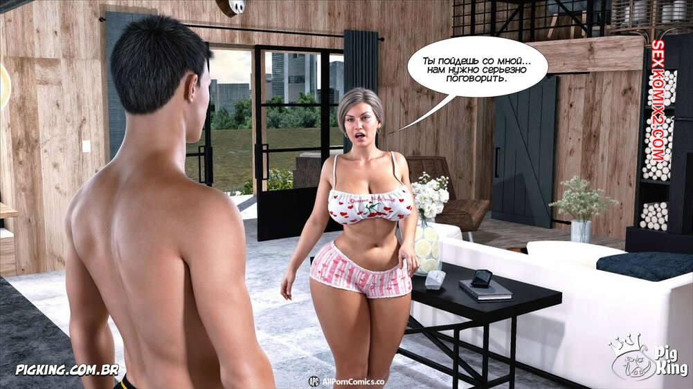 Порно комикс Мисс Камила. Часть 5. Ms. Camila. Pig King Кристофер остался наедине со своей горячей мамочкой, которая хотела поговорить с сыном о случившемся. Парень стал ласкать большие сиськи милфы, возбуждая ее, после чего вставил в нее свой член.