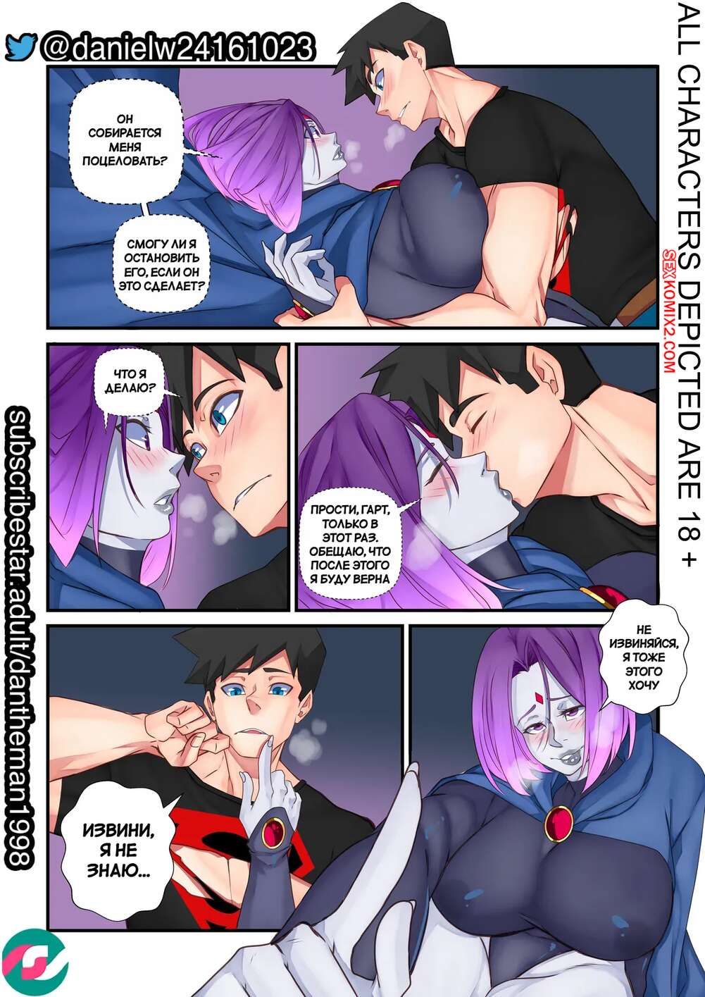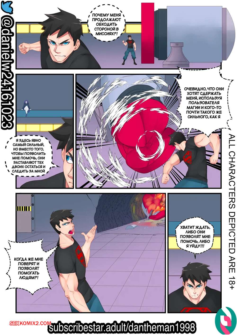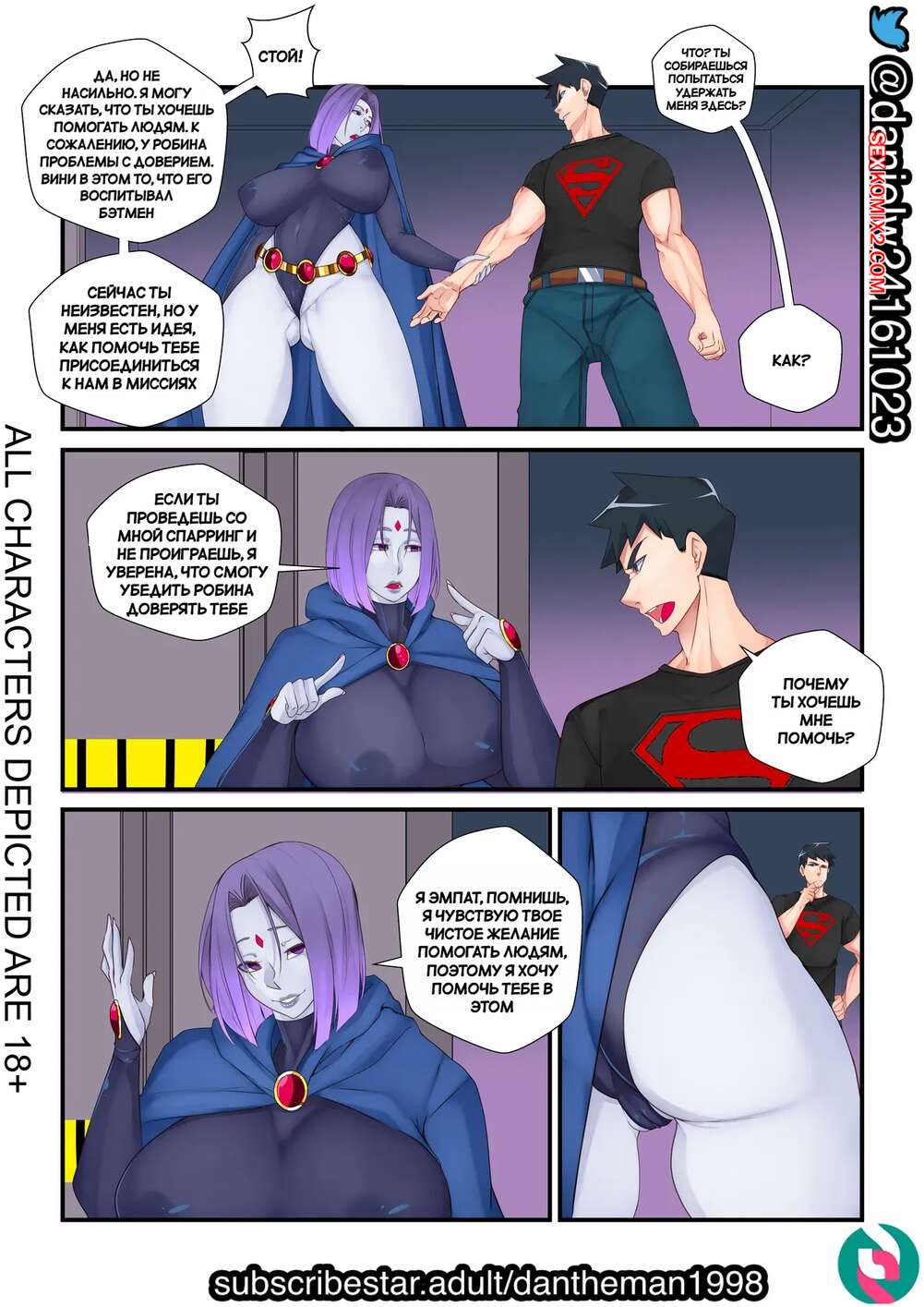 Порно комикс DC. Супер чувственный спарринг. Super Sensual Sparring. DanTheMan Рейвен и Супербой решили потренировать и устроили спарринг. В процессе борьбы оба героя возбудилась, после чего красотка отсосала хуй своего товарища по команде и дала себя выебать.