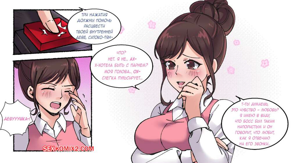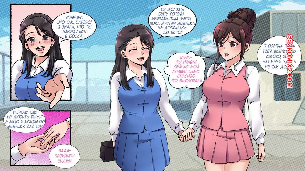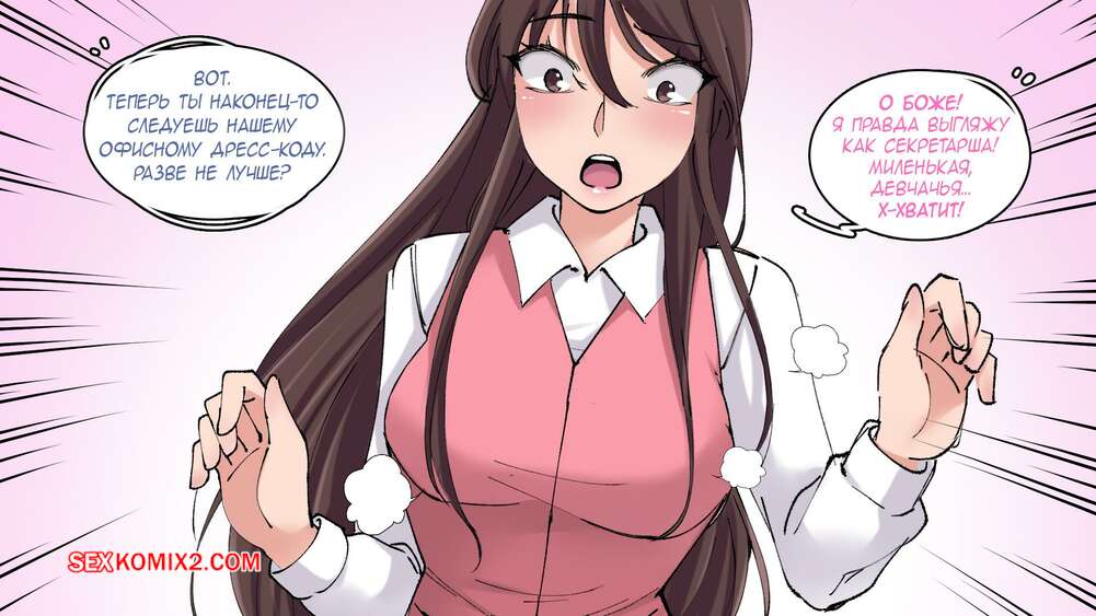 Порно комикс Oфисные Истории. Часть 1. MeowWithMe Горячая брюнетка с помощью камеры превратила своего коллегу в сексуальную красотку. Девушка сделала новой подруге макияж и подобрала одежду, что помогло ей соблазнить парня и трахнуться с ним.