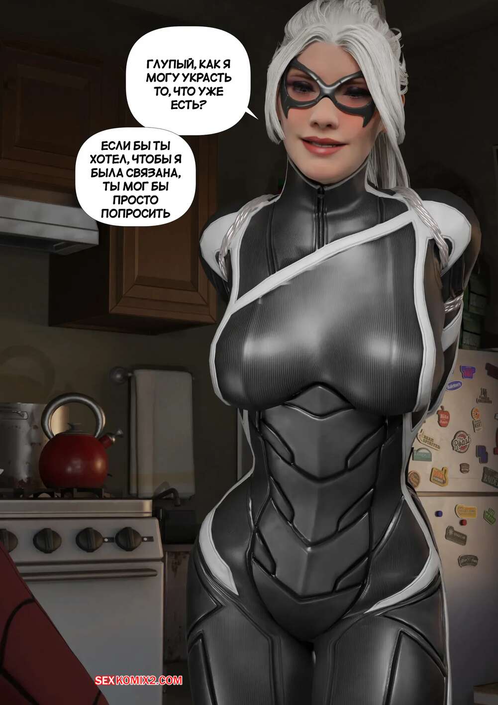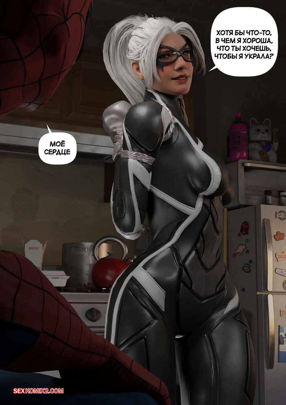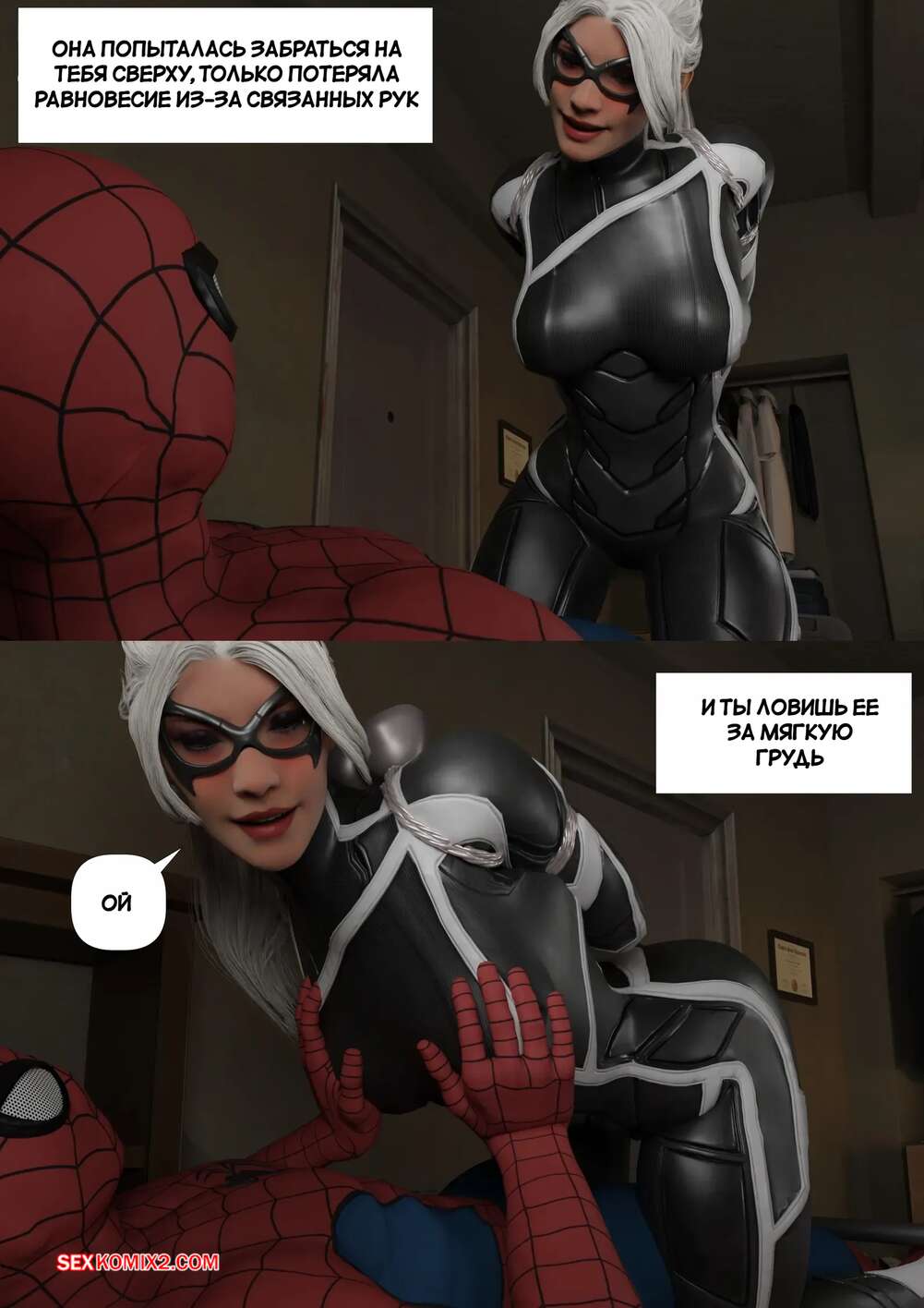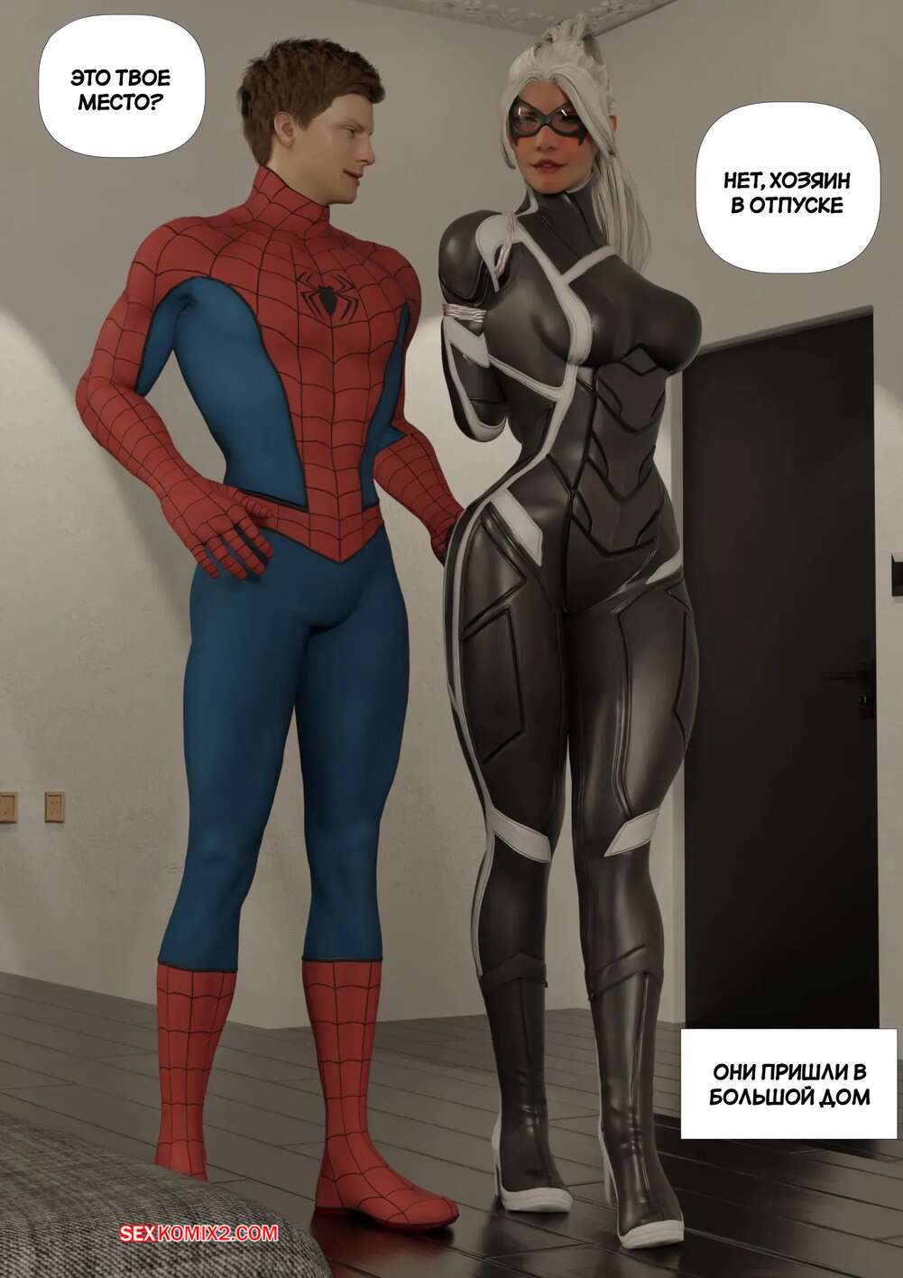 Порно комикс Человек Паук. Черная кошка. Black Cat. GentleGiant. Человек Паук поймал горячую красотку Черную кошку и решил с ней повеселиться. Он раздел девушку и дал ей отсосать свой большой хуй, после чего выебал ее в задницу.