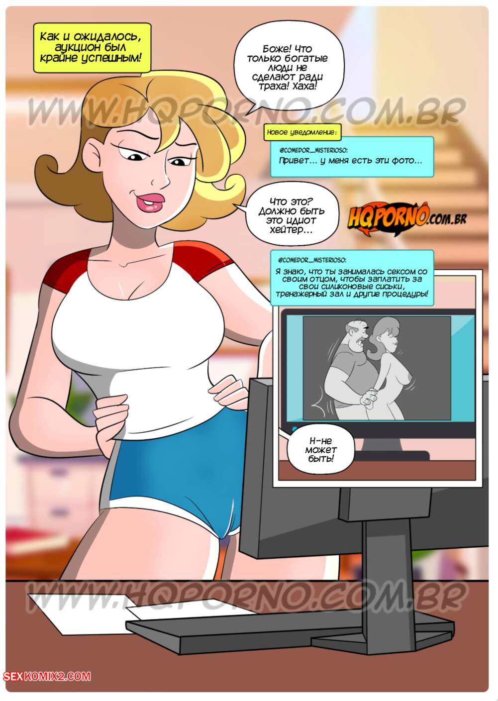 Порно комикс Блоггеры. Часть 1. As Blogueirinhas. HQPorno Горячая блондинка является онлифанс моделью и запустила аукцион, победитель которого сможет трахнуть ее девственную киску. Девушка стал шантажировать незнакомец, которым в итоге оказался ее младший брат. Мариза дала ему трахнуть свою задницу, чтобы удовлетворить братика и сохранить свою девственность.