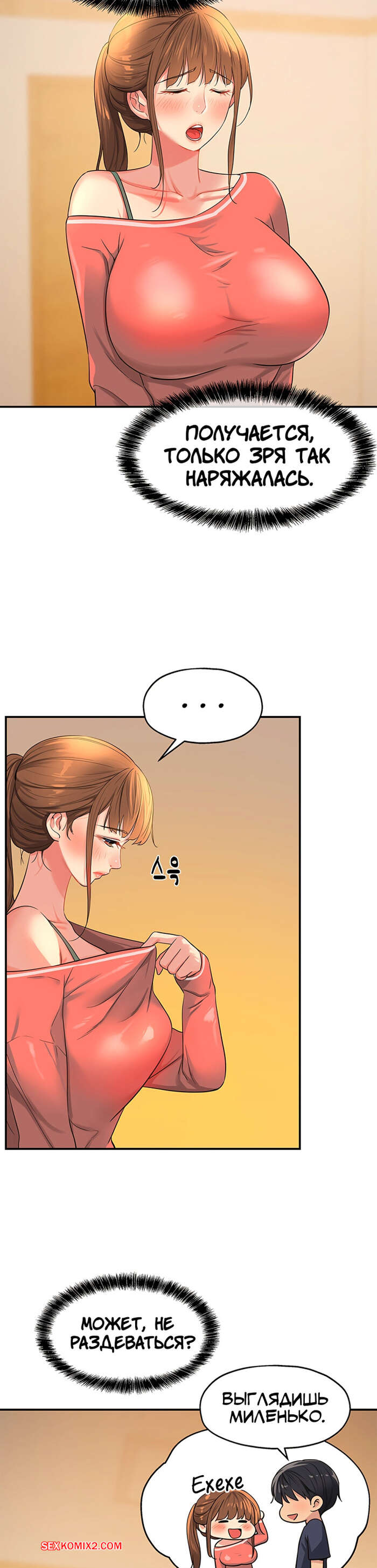 Порно комикс Маленький магазинчик. Дыра снова открыта. Часть 25 и 26 и 27 Горячая брюнетка была очень возбуждена и решила повеселиться со своим дружком. Она разделась и возбудила парня шикарным телом, после чего встала на колени и стала сосать его член.