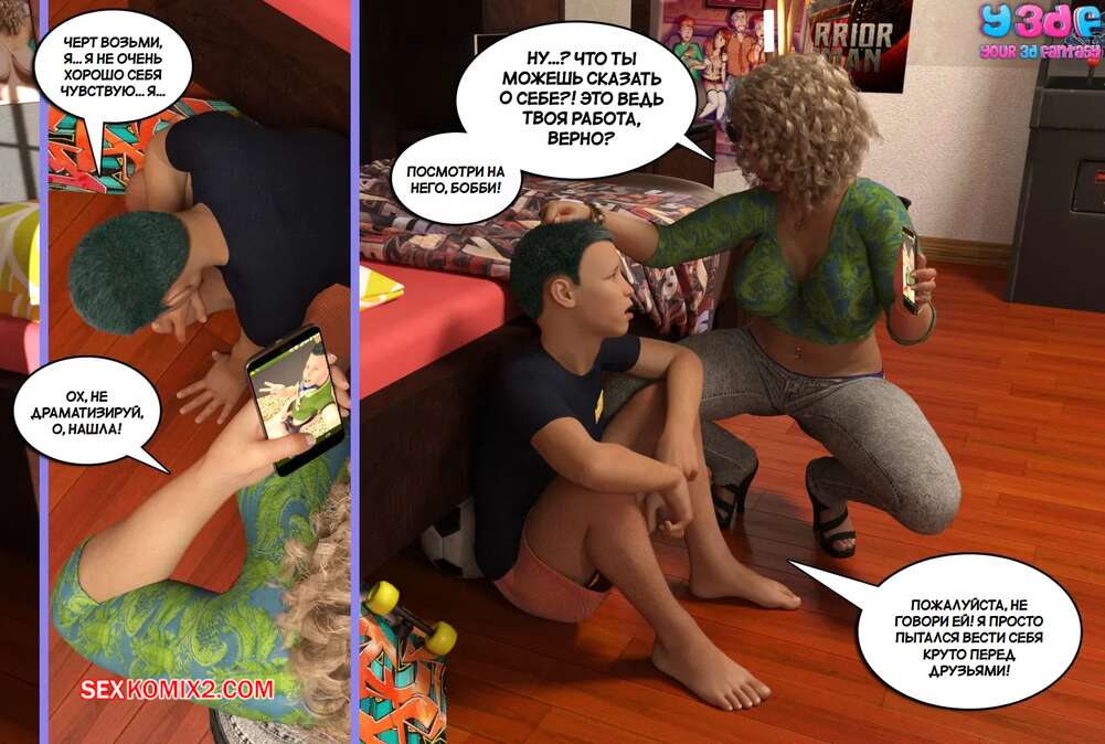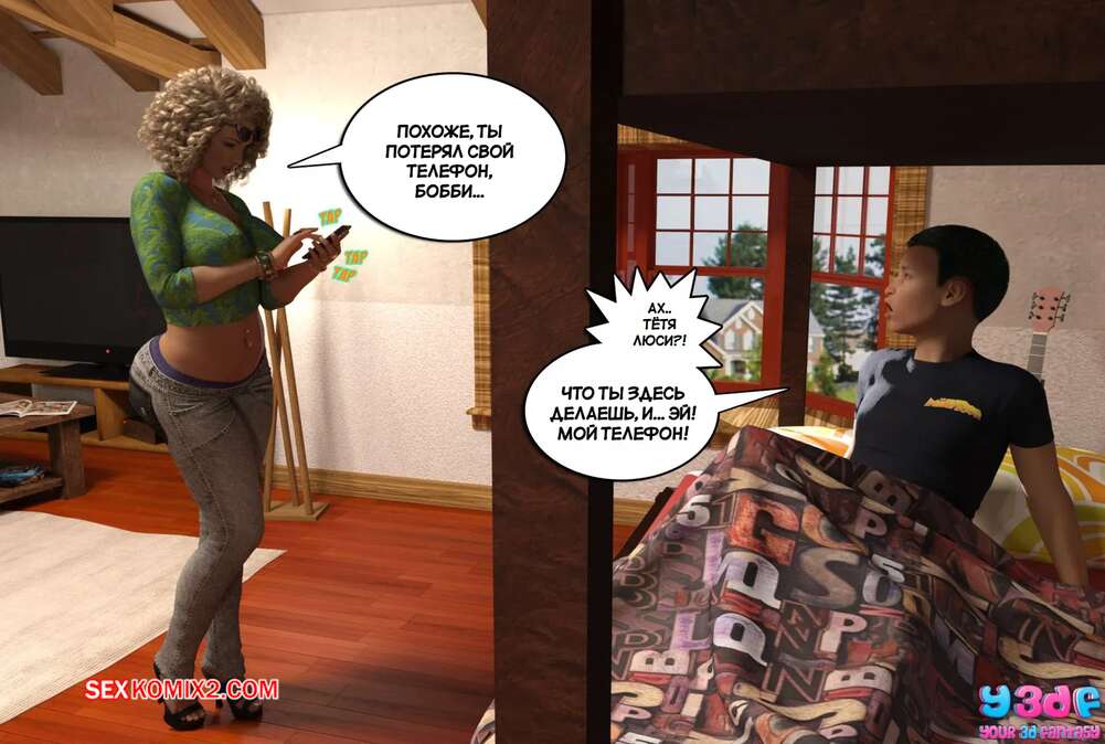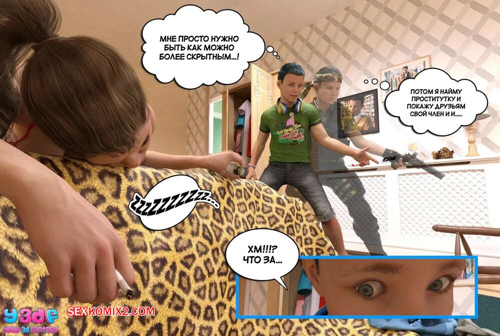 Порно комикс Докажи свою правоту. Часть 1. Prove Thy Self. Y3DF. Горячая милфа накурилась травки и уснула в своей спальне в одном белье. Ее сын застал мамочку в таком виде и решил воспользоваться моментом, чтобы сделать откровенные фотографии.