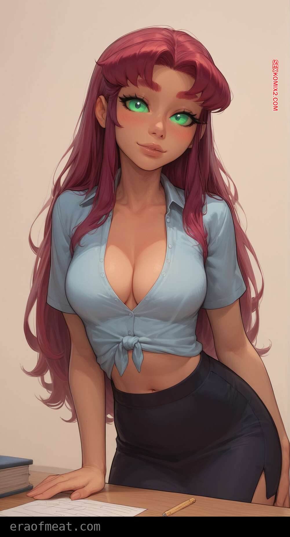 Порно комикс Starfire. Era of Meat Старфайр была очень возбуждена и решила повеселиться со своим дружком. Она разделась и отсосала большой хуй парня, после чего раздвинула ножки и дала себя выебать.