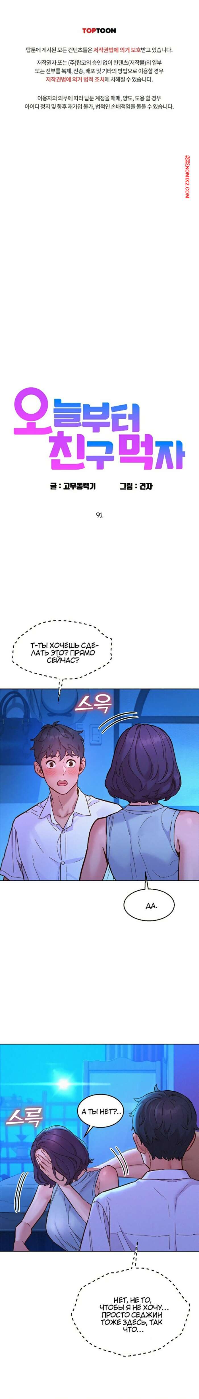 Порно комикс С сегодняшнего дня давай будем друзьями. Части 91 и 92 и 93 Горячая красотка была очень возбуждена и решила повеселиться со своим дружком. Они разделись и стали ласкать друг друга, после чего красотка раздвинула ножки и дала парню себя выебать.