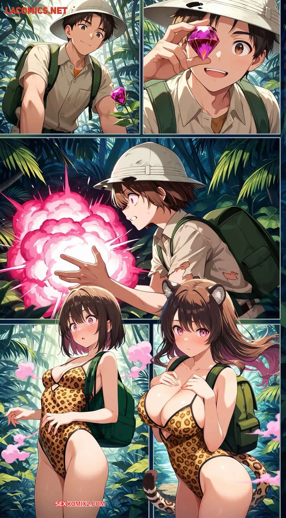 Порно комикс The Rose of the Jungle. Su Voon Art Парень археолог нашел в лесу драгоценный камень и стал его внимательно разглядывать. Внезапно парнишка превратился в сексуальную брюнетку с шикарным телом, которая стала выставлять напоказ свои прелести.
