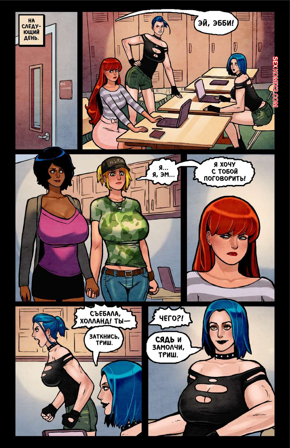 Порно комикс СВИТЧ. Часть 8. SWITCH. Reinbach Возбужденные красотки очень возбуждены и соблазняют своих дружков, желая повеселиться. Они раздеваются и сосут хуи парней, после чего дают им себя как следует выебать.