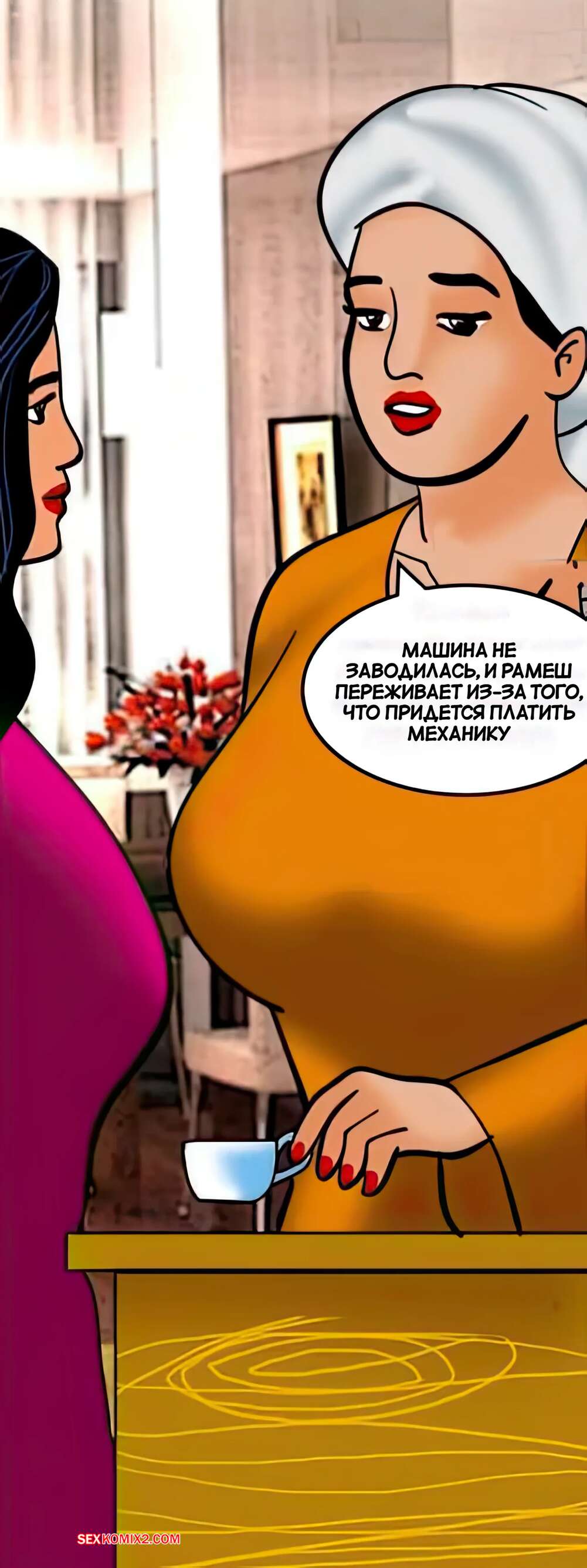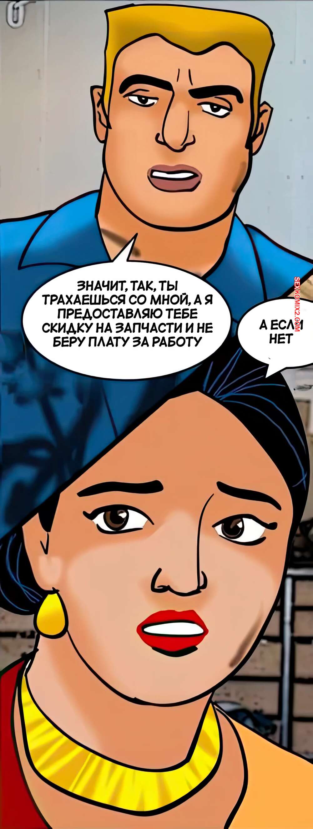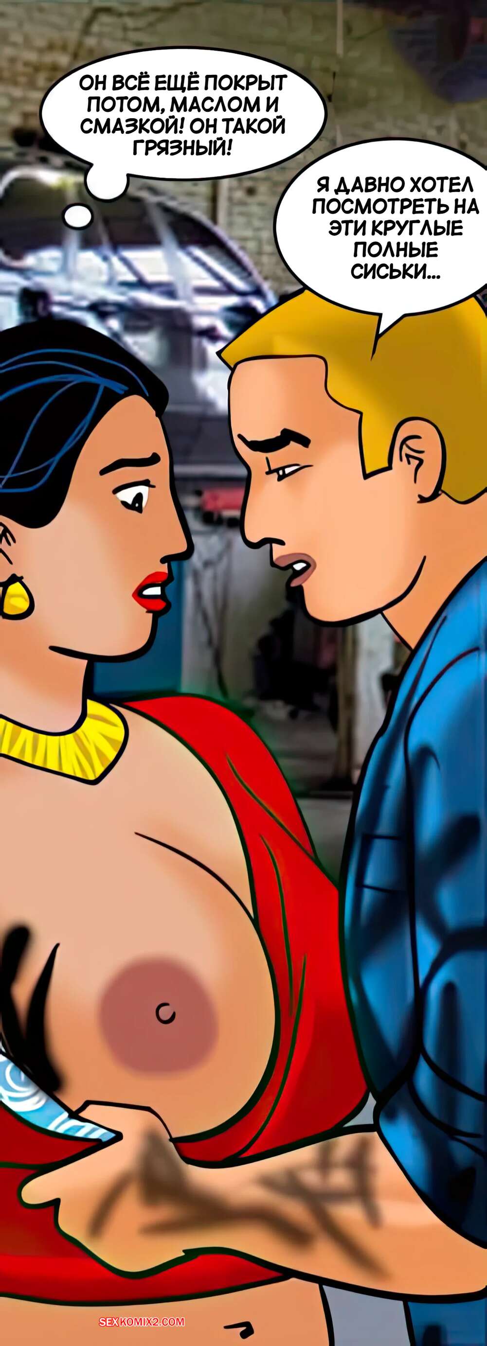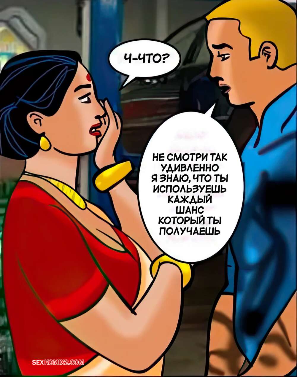 Порно комикс Веламма. Часть 42. Velamma. Velamma Горячая милфа привезла машину в ремонт и решила повеселиться с рабочим. Красотка встала на колени и стала сосать хуй мастера, после чего дала ему себя выебать во все дырочки.