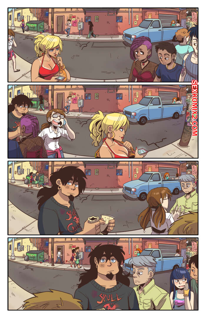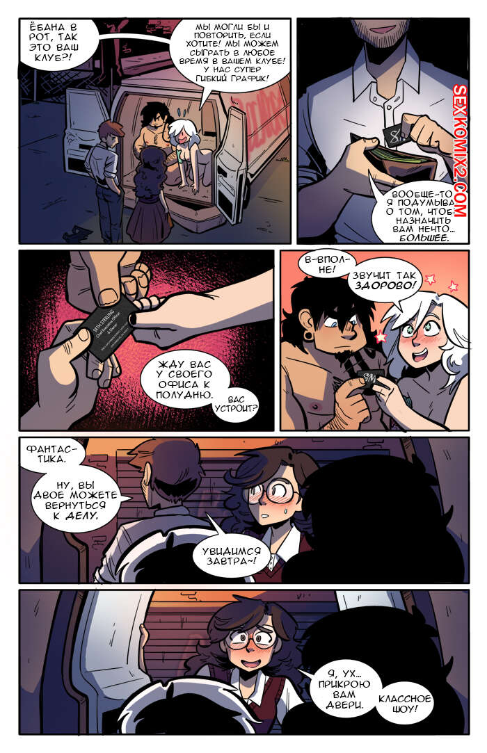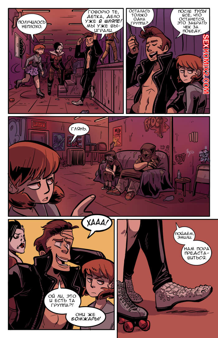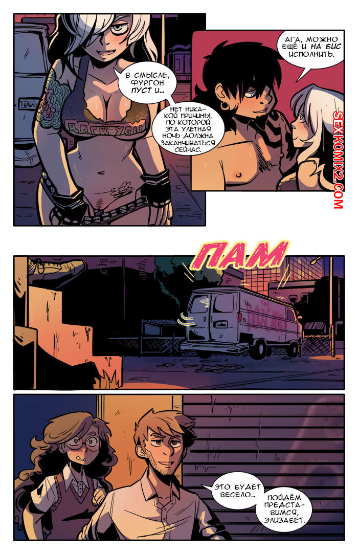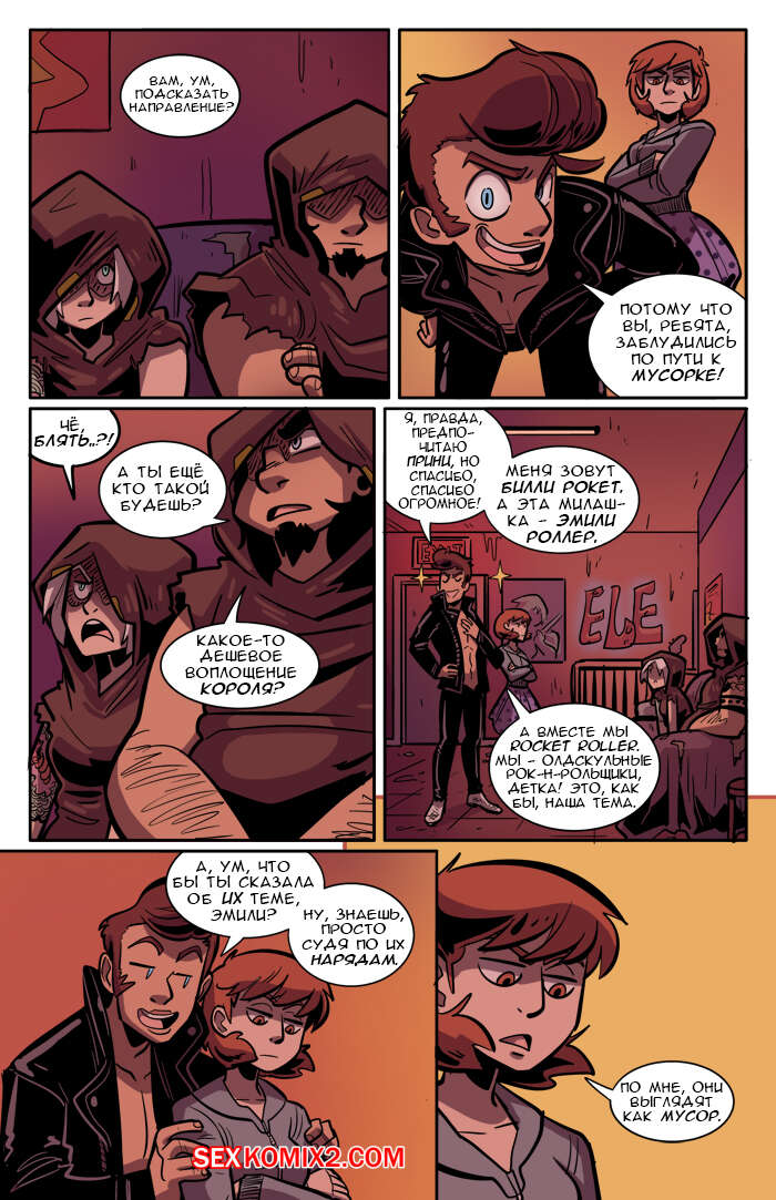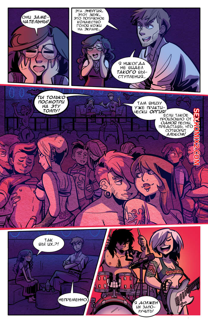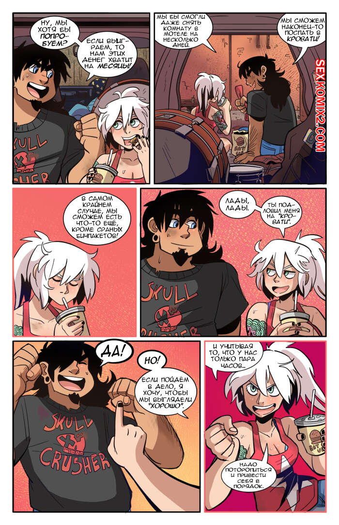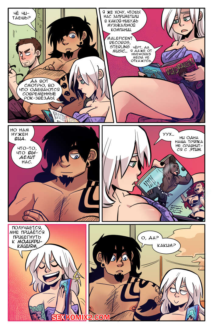 Порно комикс Рок хуй. The Rock Cocks. Часть 2. Вдарим рок Бездомные парень с девушкой решили выступить на рокконцерте, чтобы выиграть тысячу баксов. Они так волновались, что решили подрочить и расслабиться перед важным мероприятием. Успешно выступив и выиграв в конкурсе, они решили отпраздновать и поебаться в фургоне, но неожиданно их прервали.