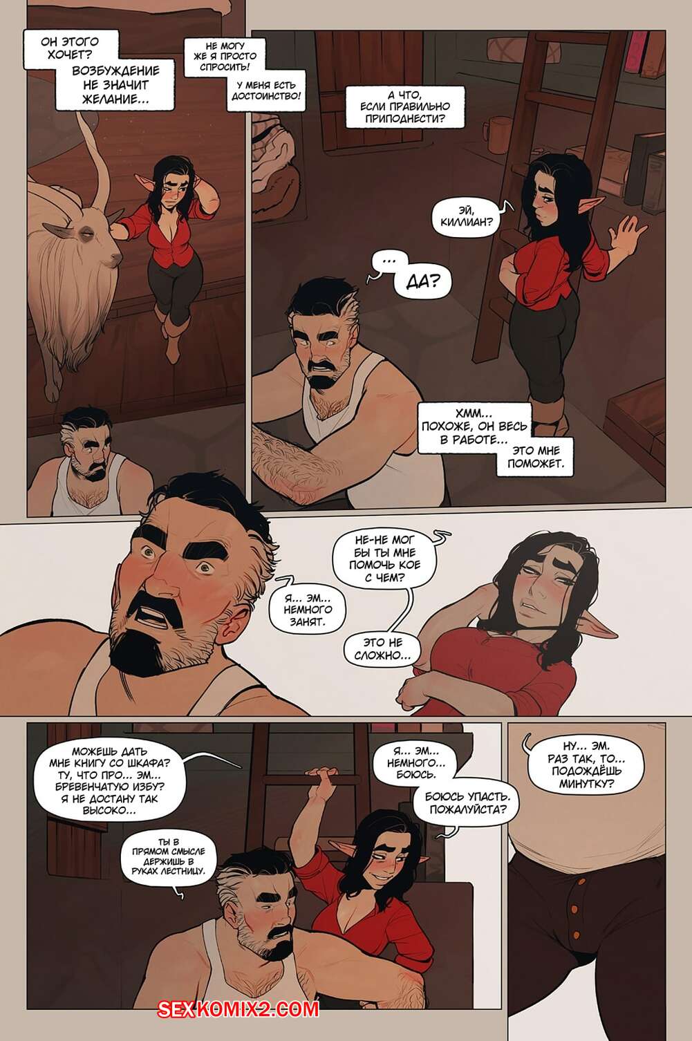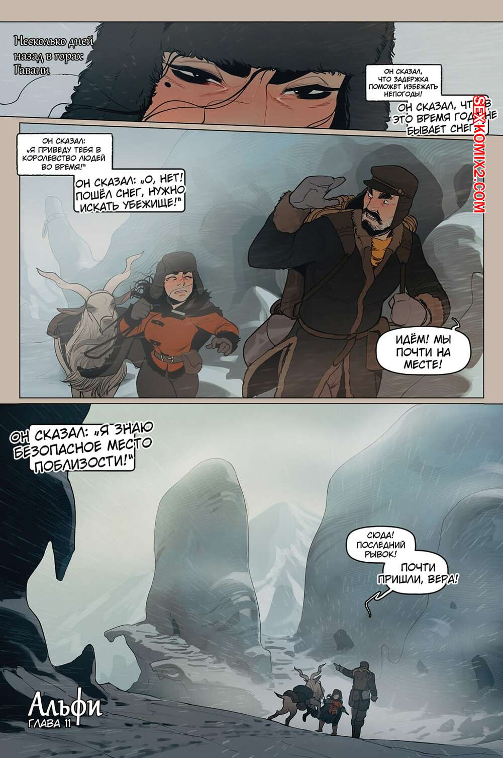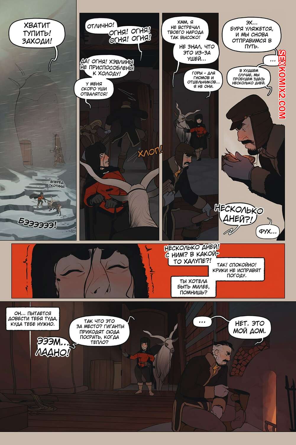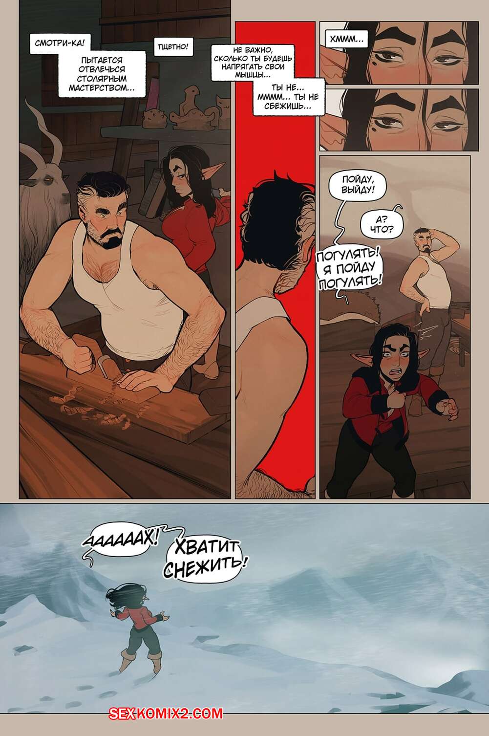 Порно комикс Альфи. Часть 11. InCase Мужик с красоткой эльфийкой пробирались через снежную бурю и решили переждать ее в домике. Там согревшись и поев, им было больше нечего делать и тогда мужик стал приставать к красотке, чтобы она отсосала его хуй, а затем он уже с радостью вставил его в нее и выебал.