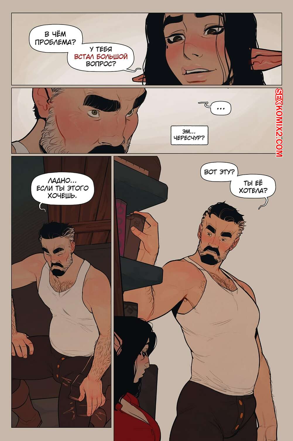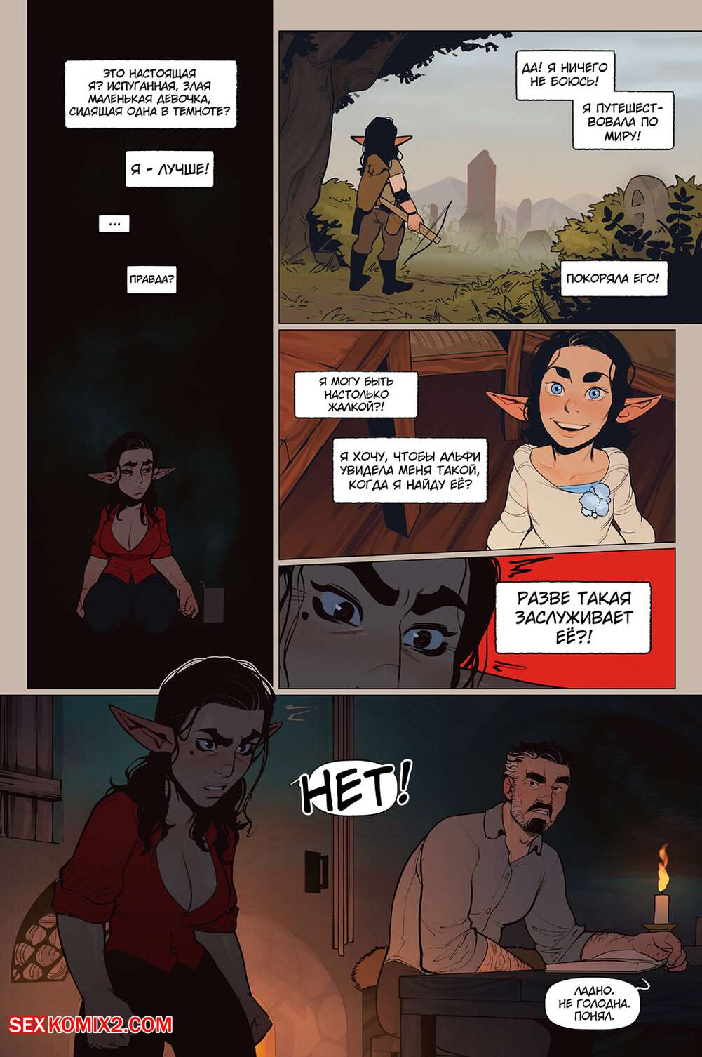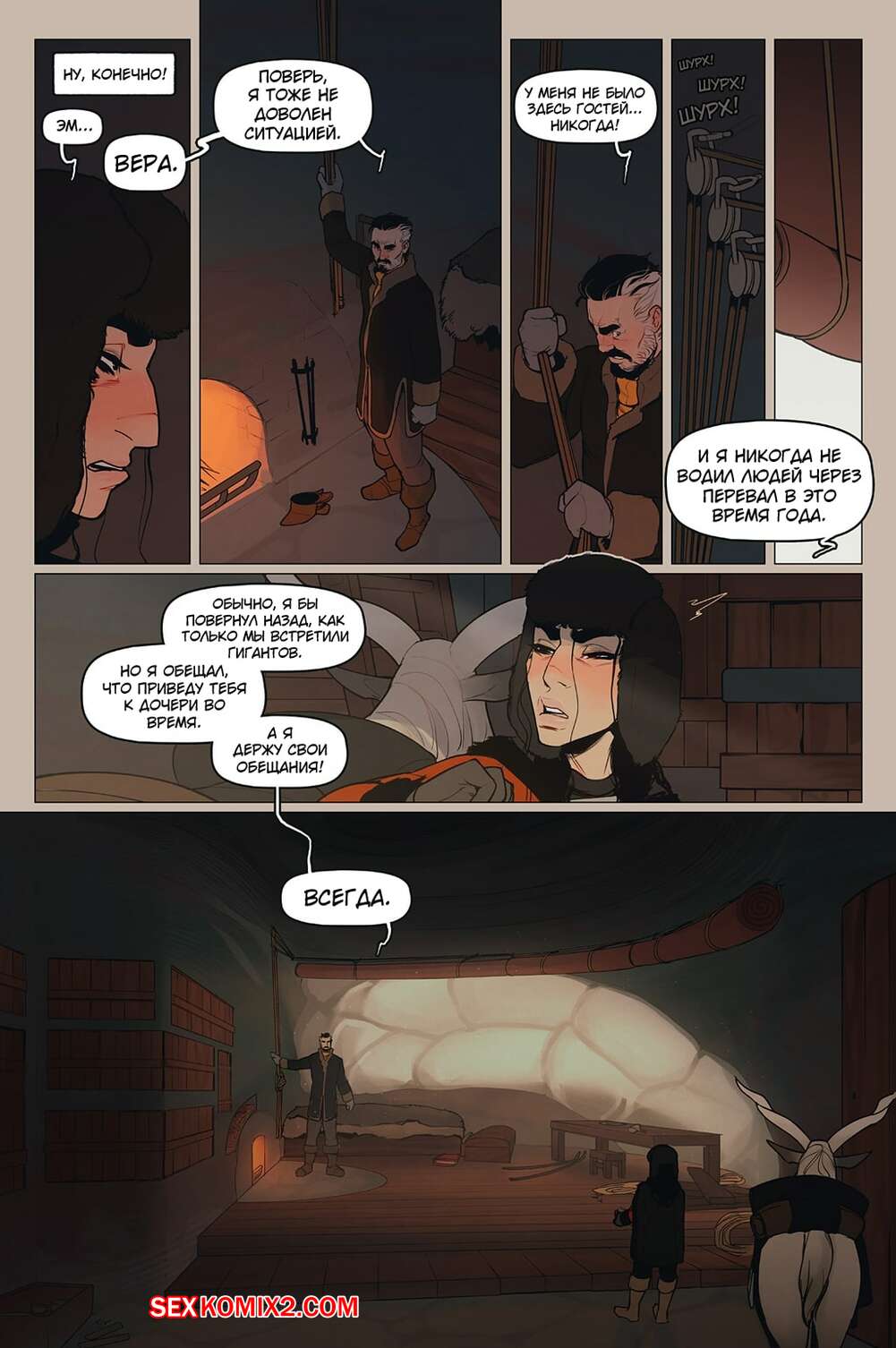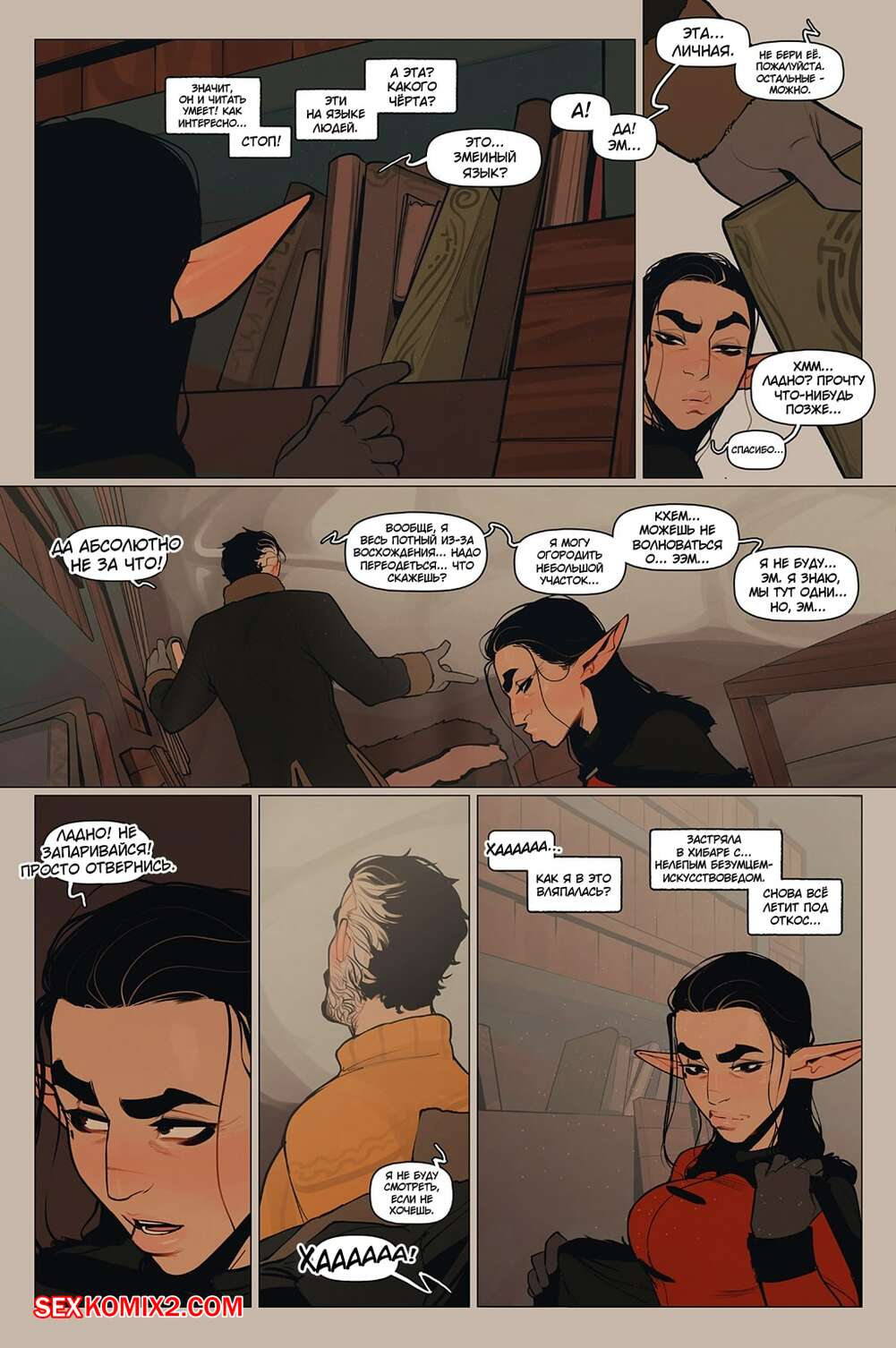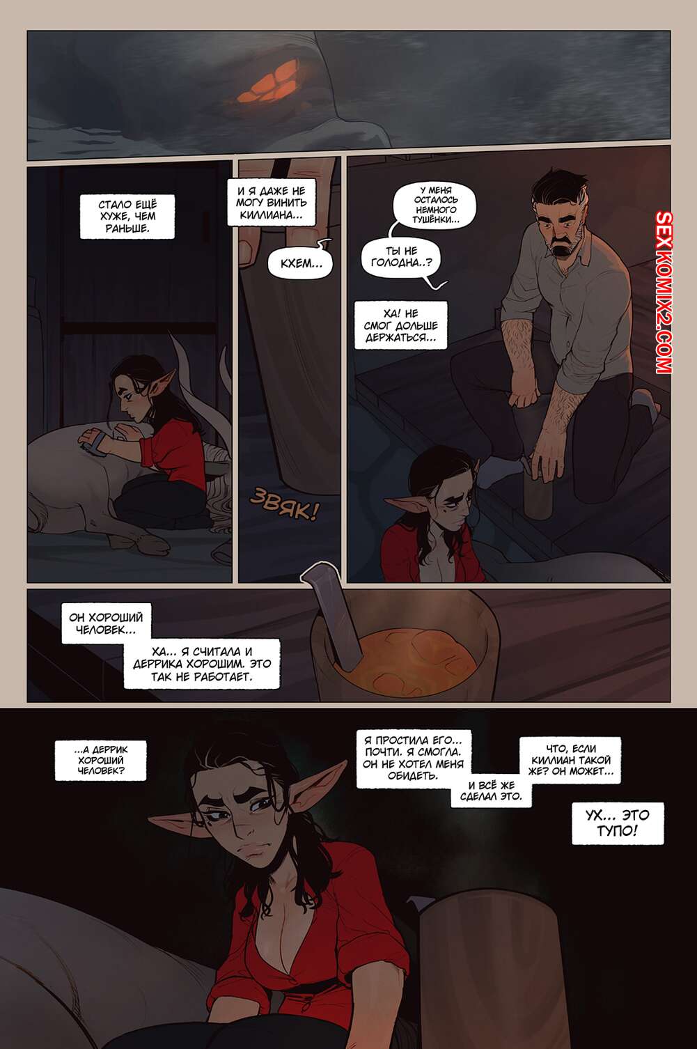 Порно комикс Альфи. Часть 11. InCase Мужик с красоткой эльфийкой пробирались через снежную бурю и решили переждать ее в домике. Там согревшись и поев, им было больше нечего делать и тогда мужик стал приставать к красотке, чтобы она отсосала его хуй, а затем он уже с радостью вставил его в нее и выебал.