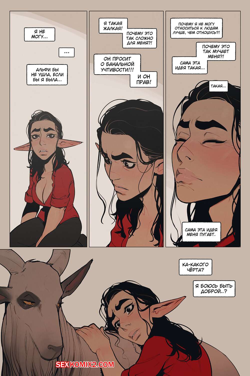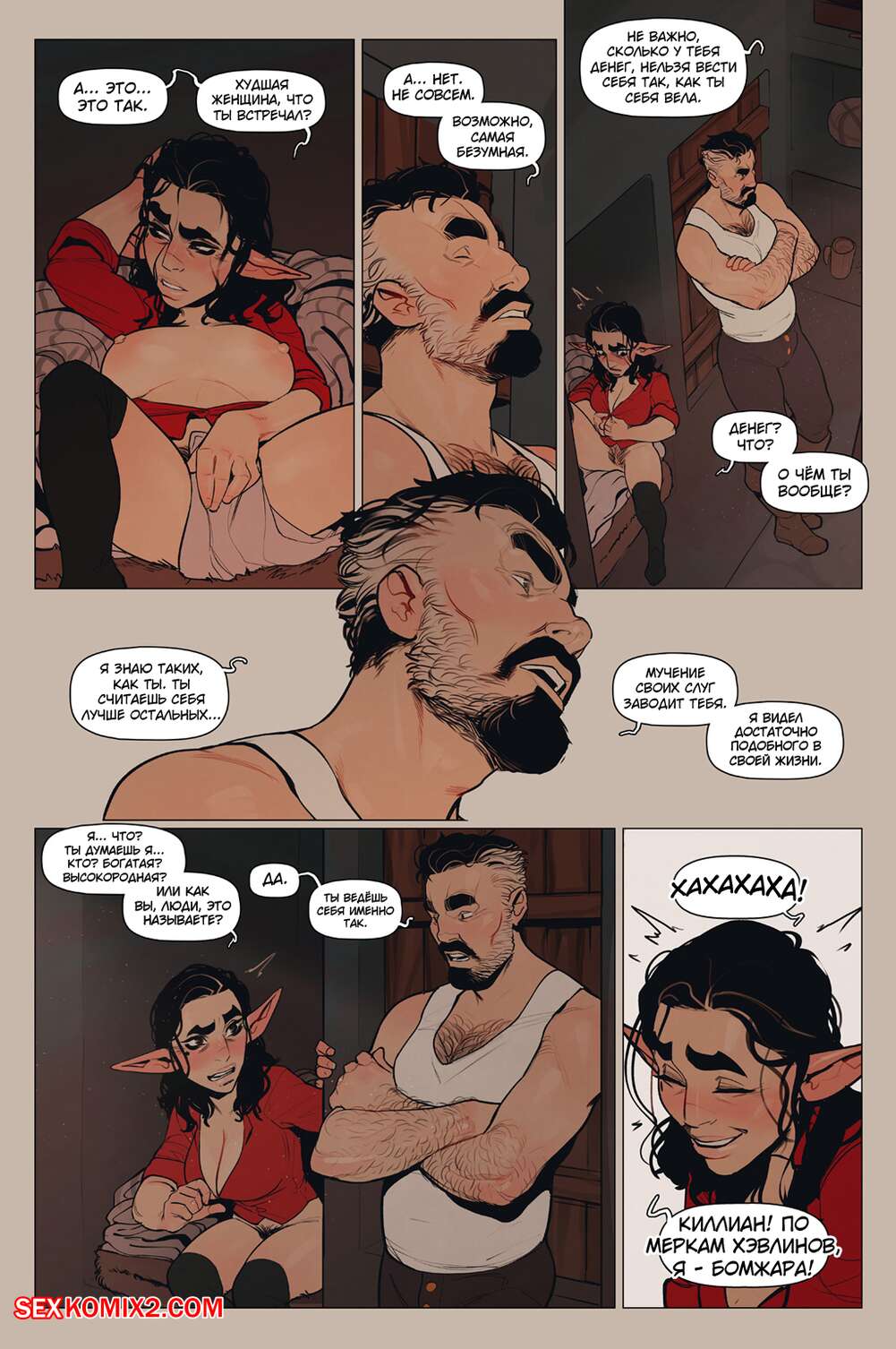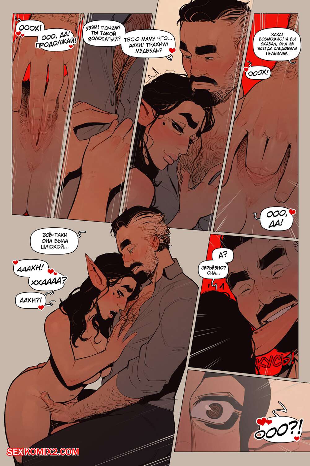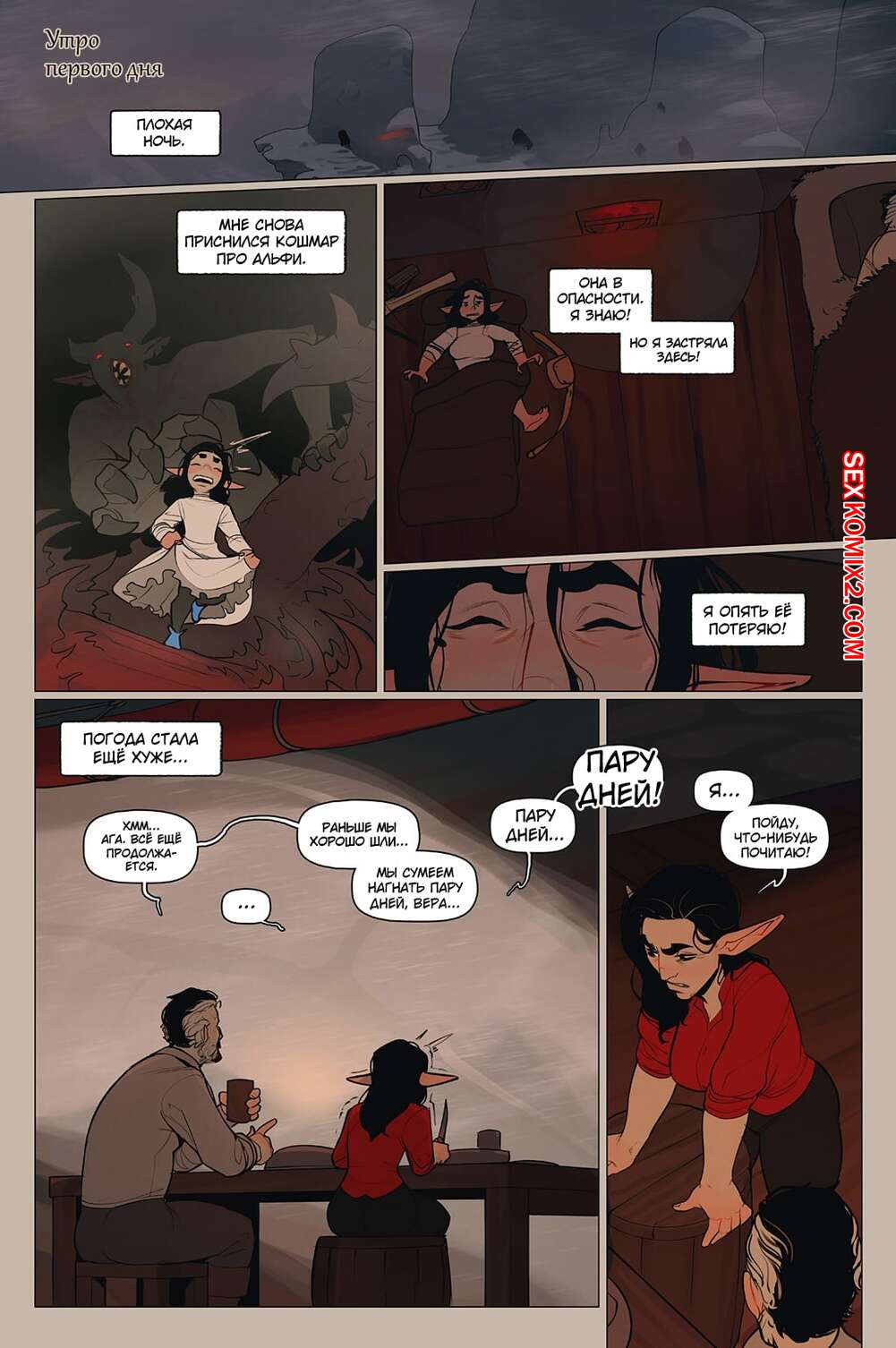 Порно комикс Альфи. Часть 11. InCase Мужик с красоткой эльфийкой пробирались через снежную бурю и решили переждать ее в домике. Там согревшись и поев, им было больше нечего делать и тогда мужик стал приставать к красотке, чтобы она отсосала его хуй, а затем он уже с радостью вставил его в нее и выебал.