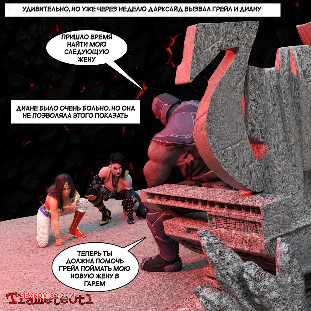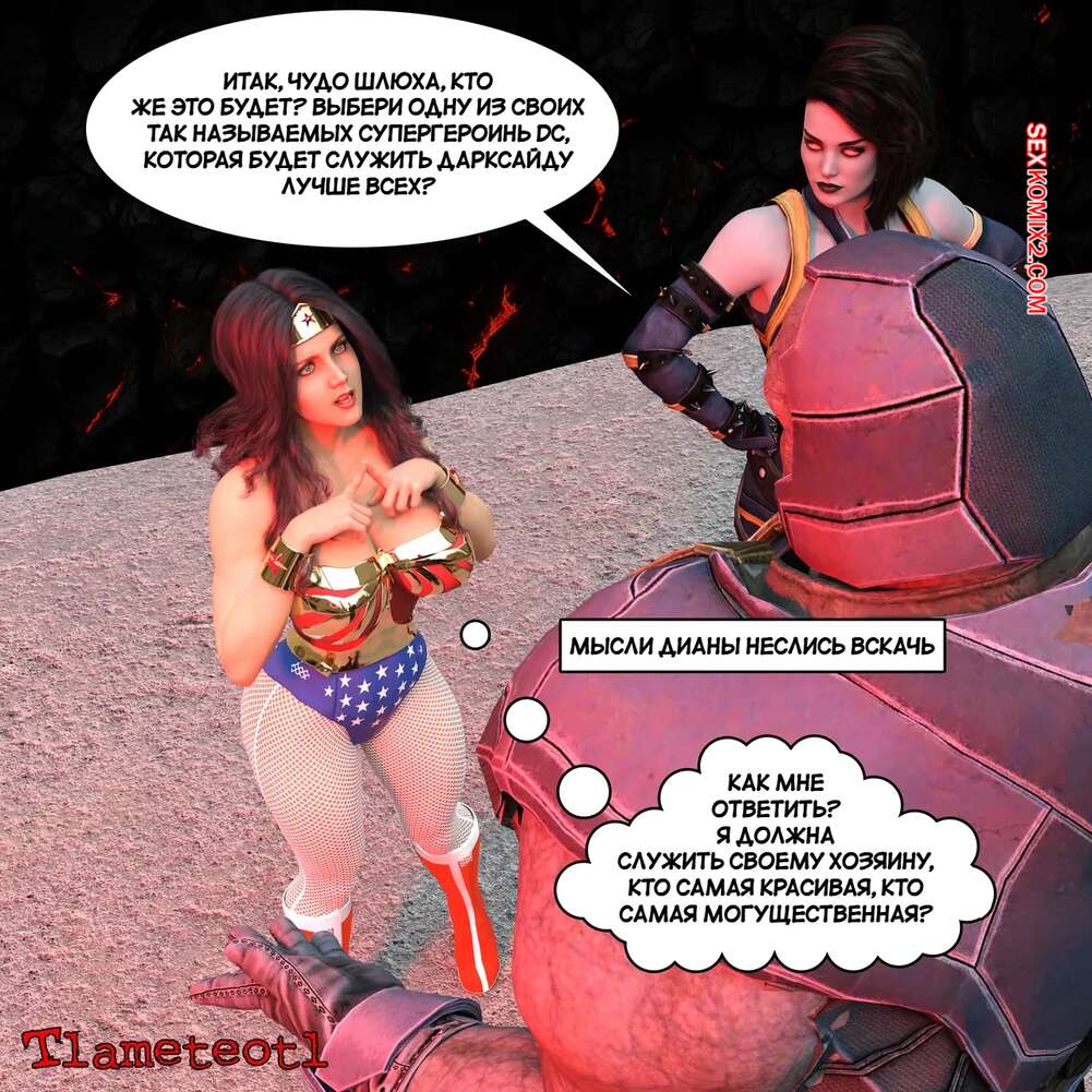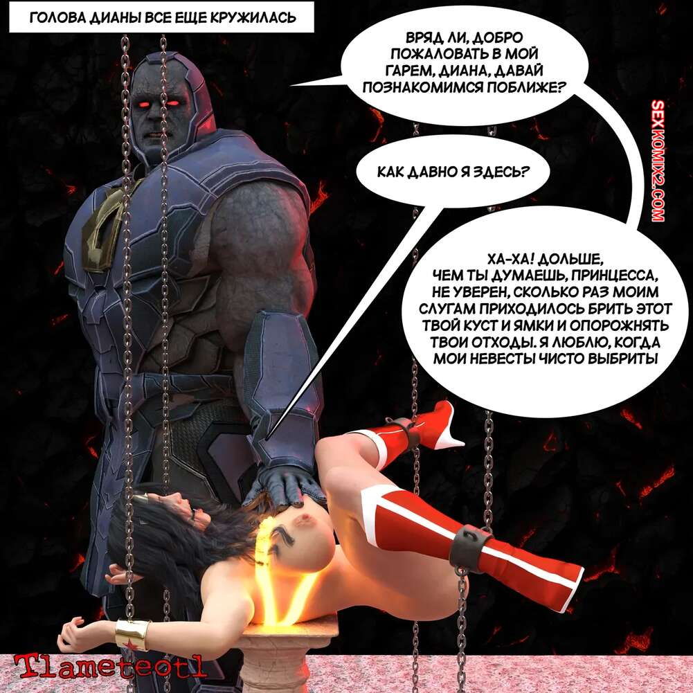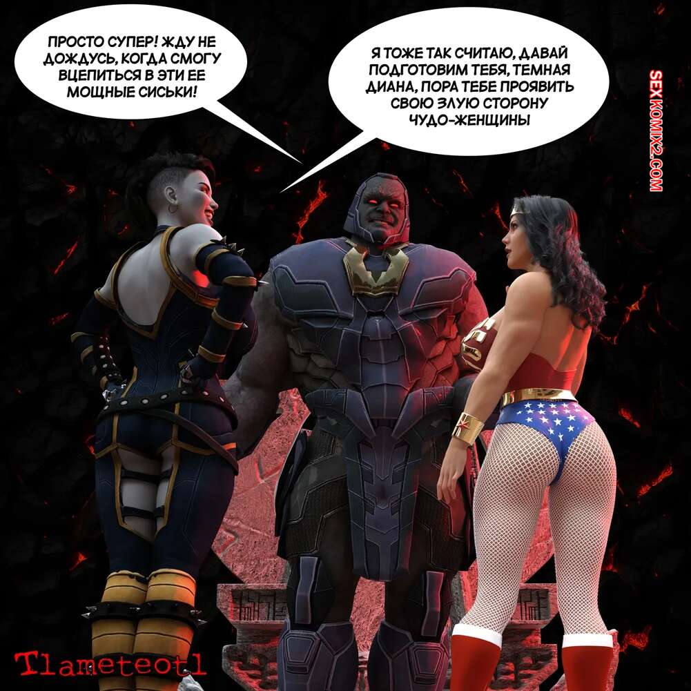 Порно комикс DC. Гарем правосудия. Часть 1. Harem of Justice. Powergirl. Tlameteotl Дарксайд схватил горячую красотку Чудо Женщину и решил насладиться шикарным телом девушки. Он выебал ее во все дырочки, после чего оставил ее своей помощнице для веселья.